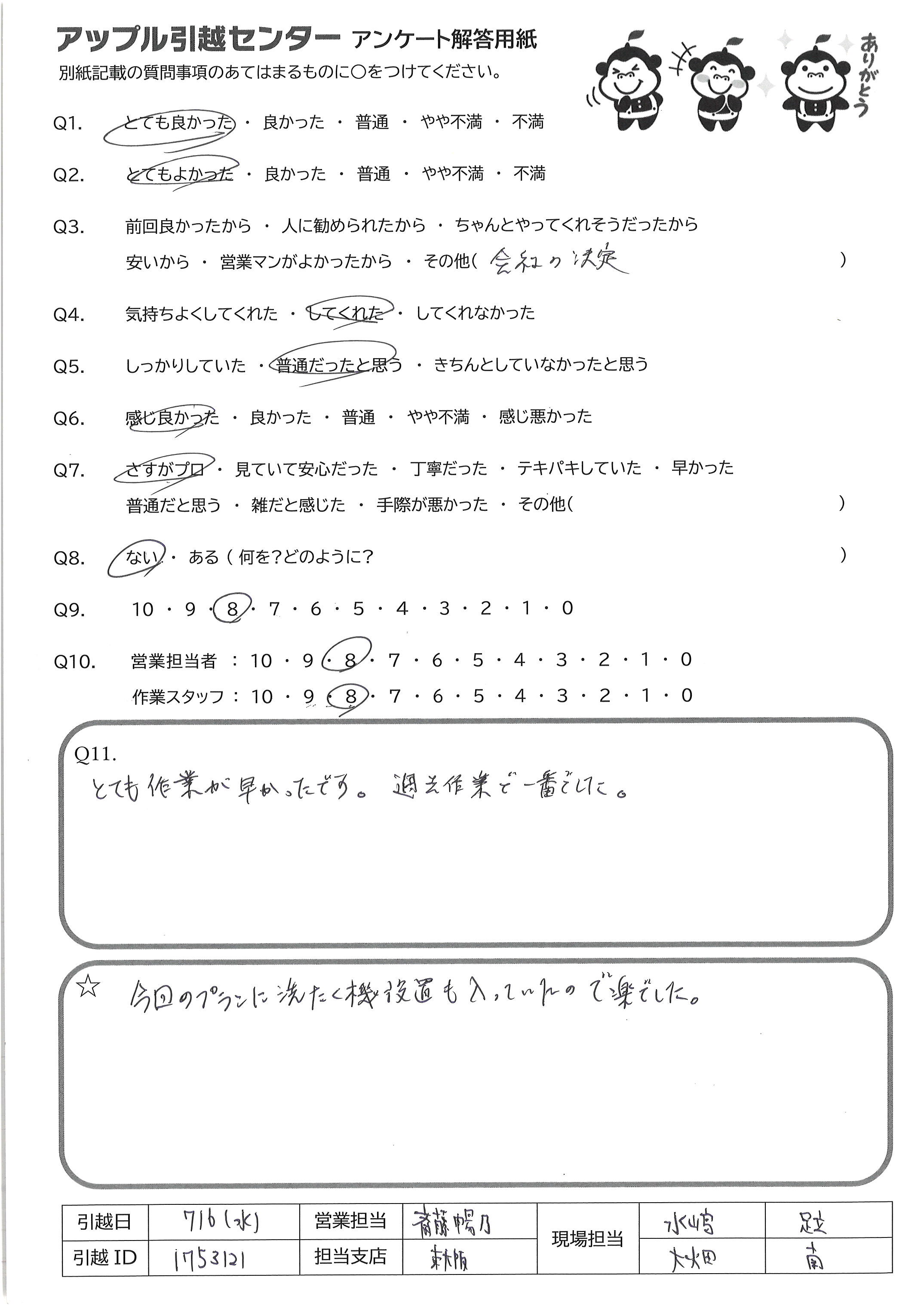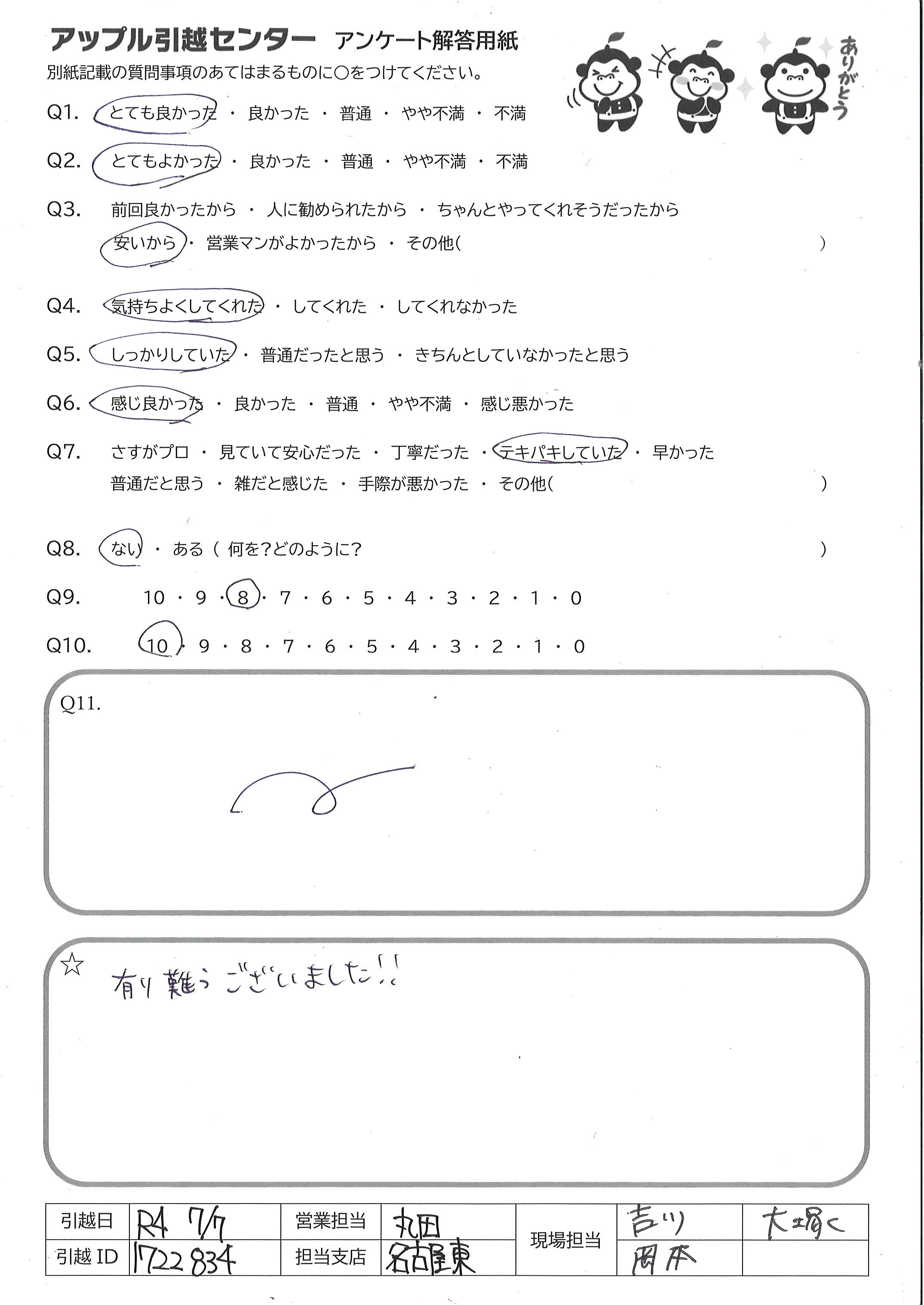 A.暑い中引越し作業 ありがとうございました!