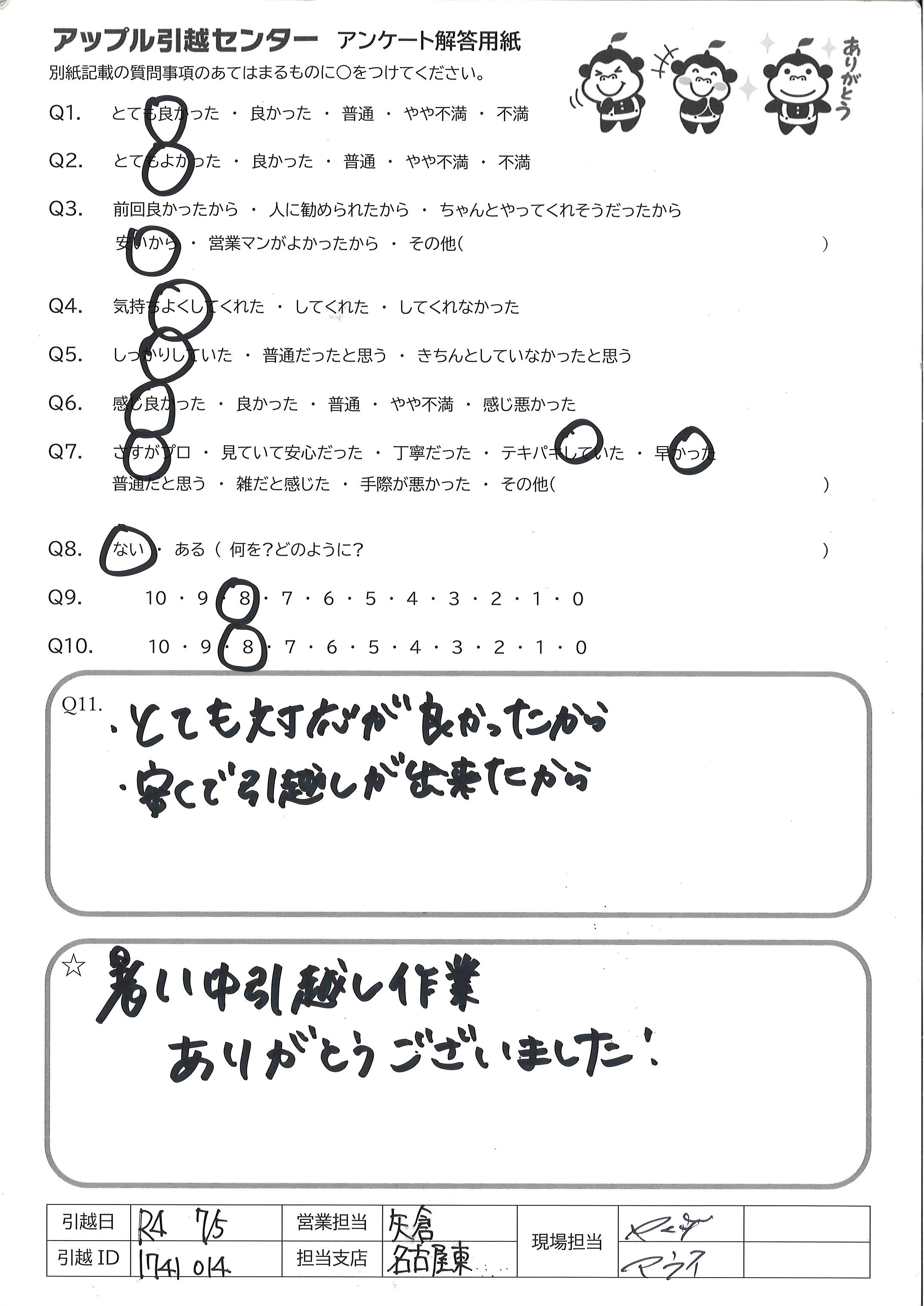 引越し日:2022年07月07日 エリア:愛知県名古屋市西区