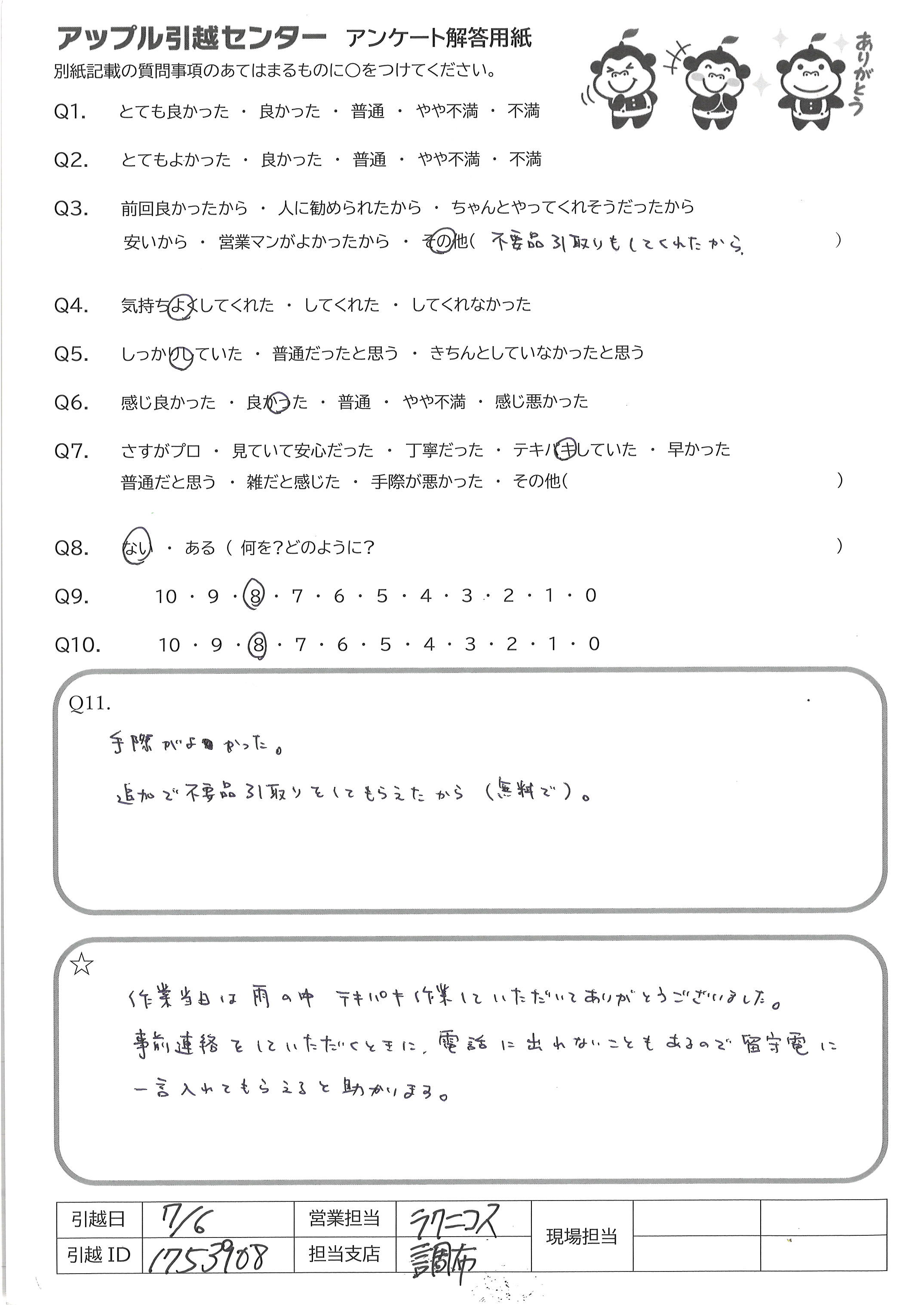 A.手際がよかった 追加で不要品引取りをしてもらえたから(無料で)
