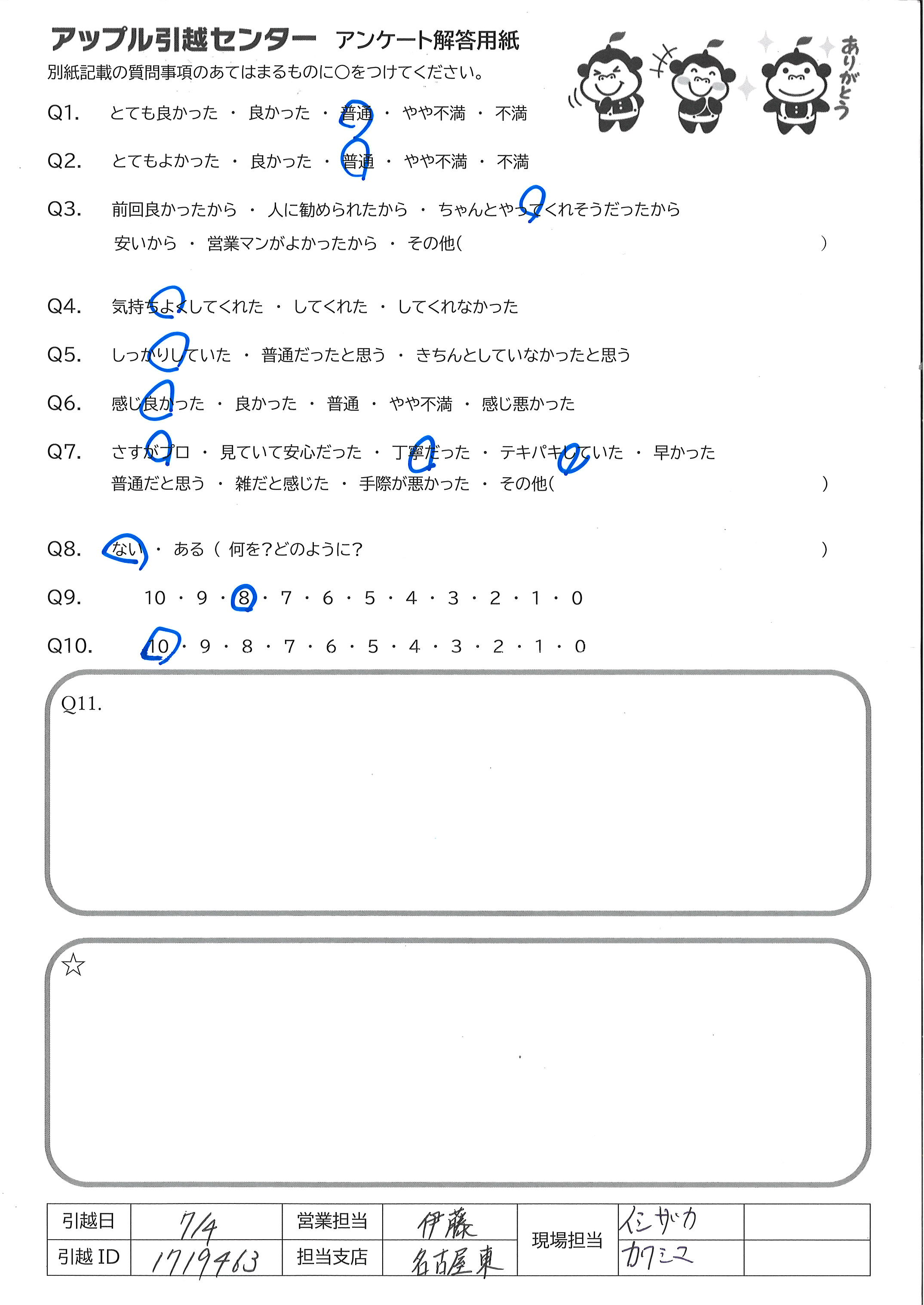 A.Q9 は他社との比較をしていない為、他社の内容がわからないので8点 Q10 は 作業が速く現場担当者の対応がとても良かった