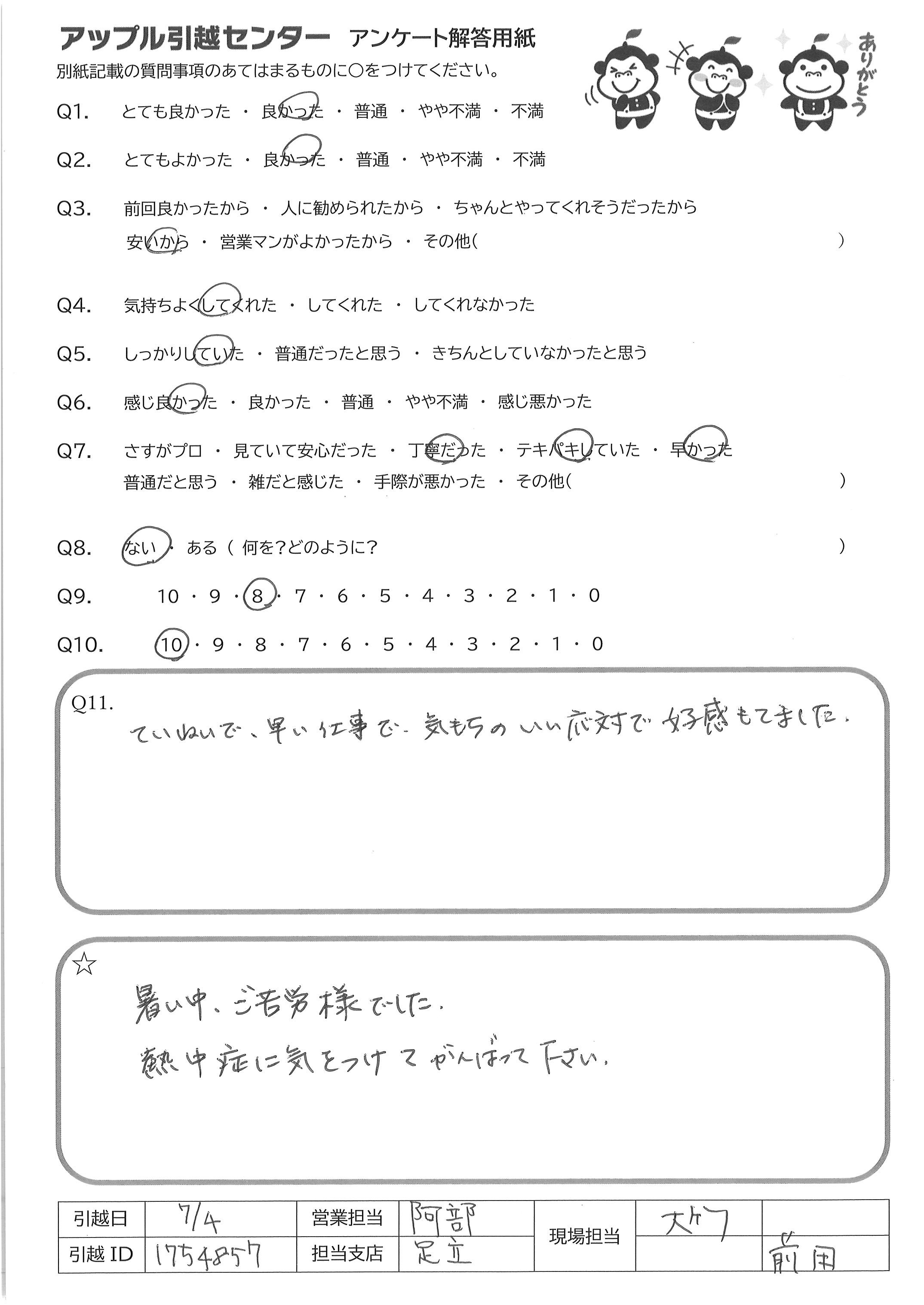 アップル引越センターでは、面映いお褒めの言葉も、胸に突き刺さるお叱りのコメントも、