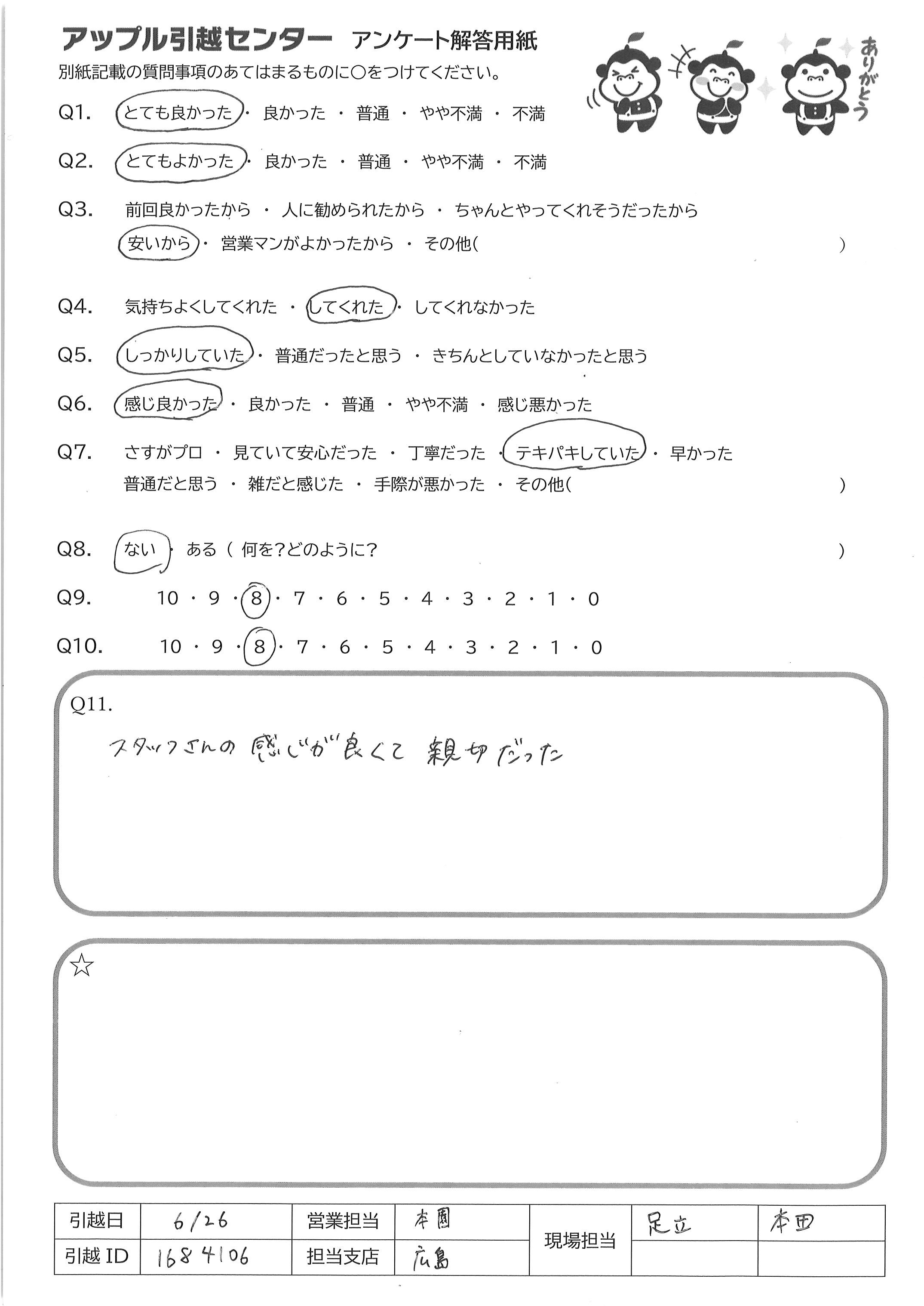 引越し日:2022年06月26日 エリア:広島県広島市安佐南区
