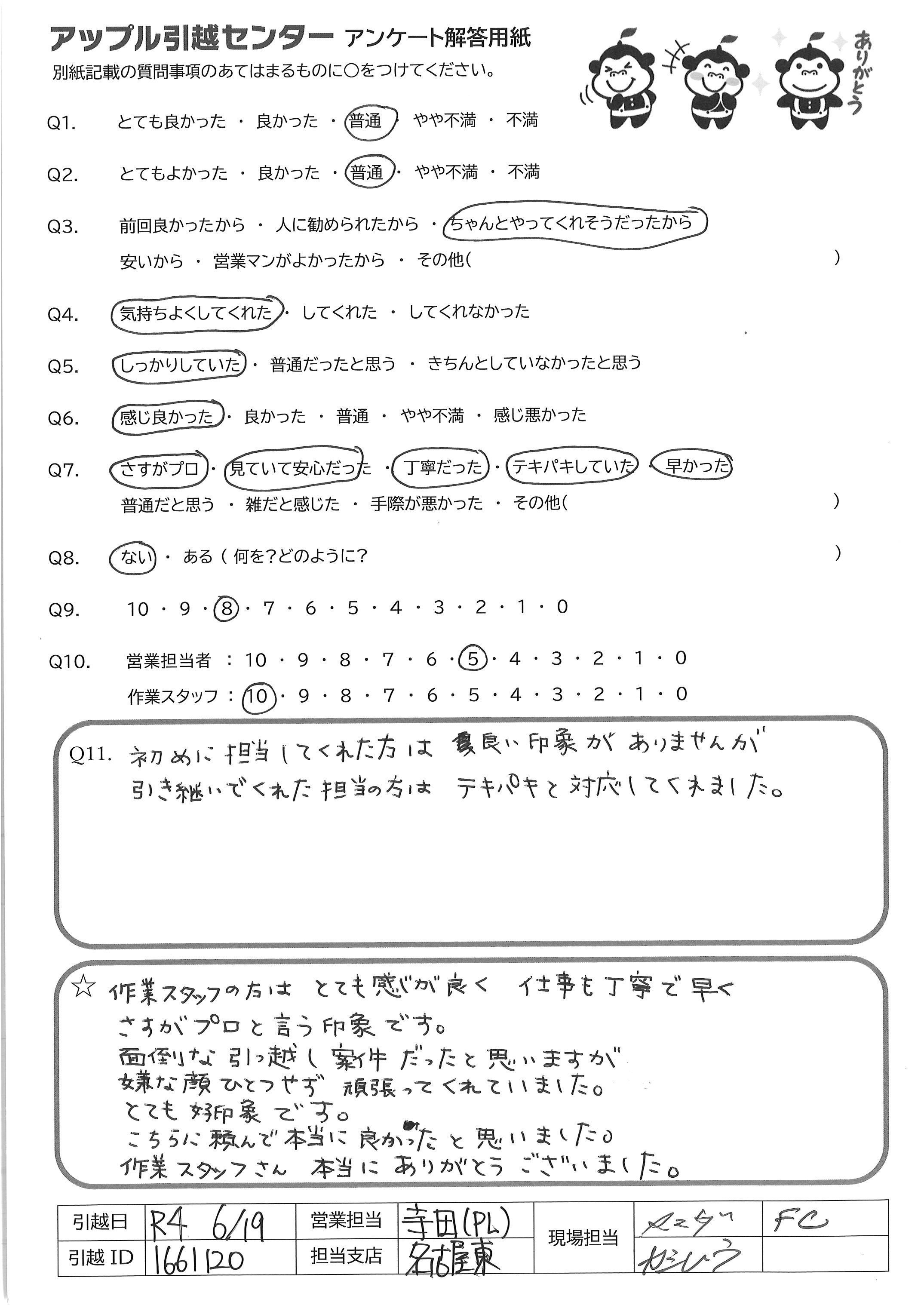 引越し日:2022年06月19日 エリア:愛知県名古屋市南区