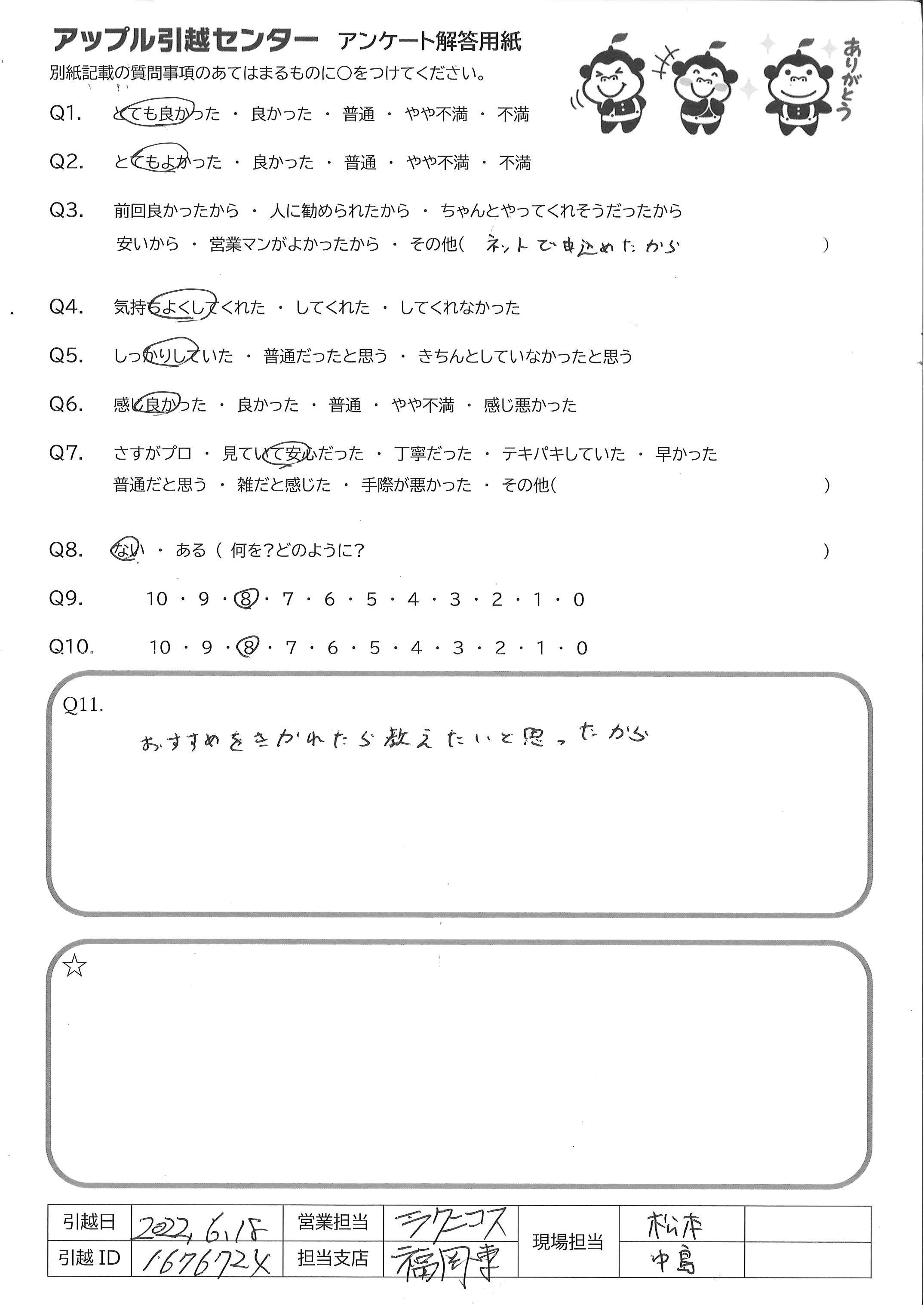 引越し日:2022年06月18日 エリア:福岡県福岡市博多区