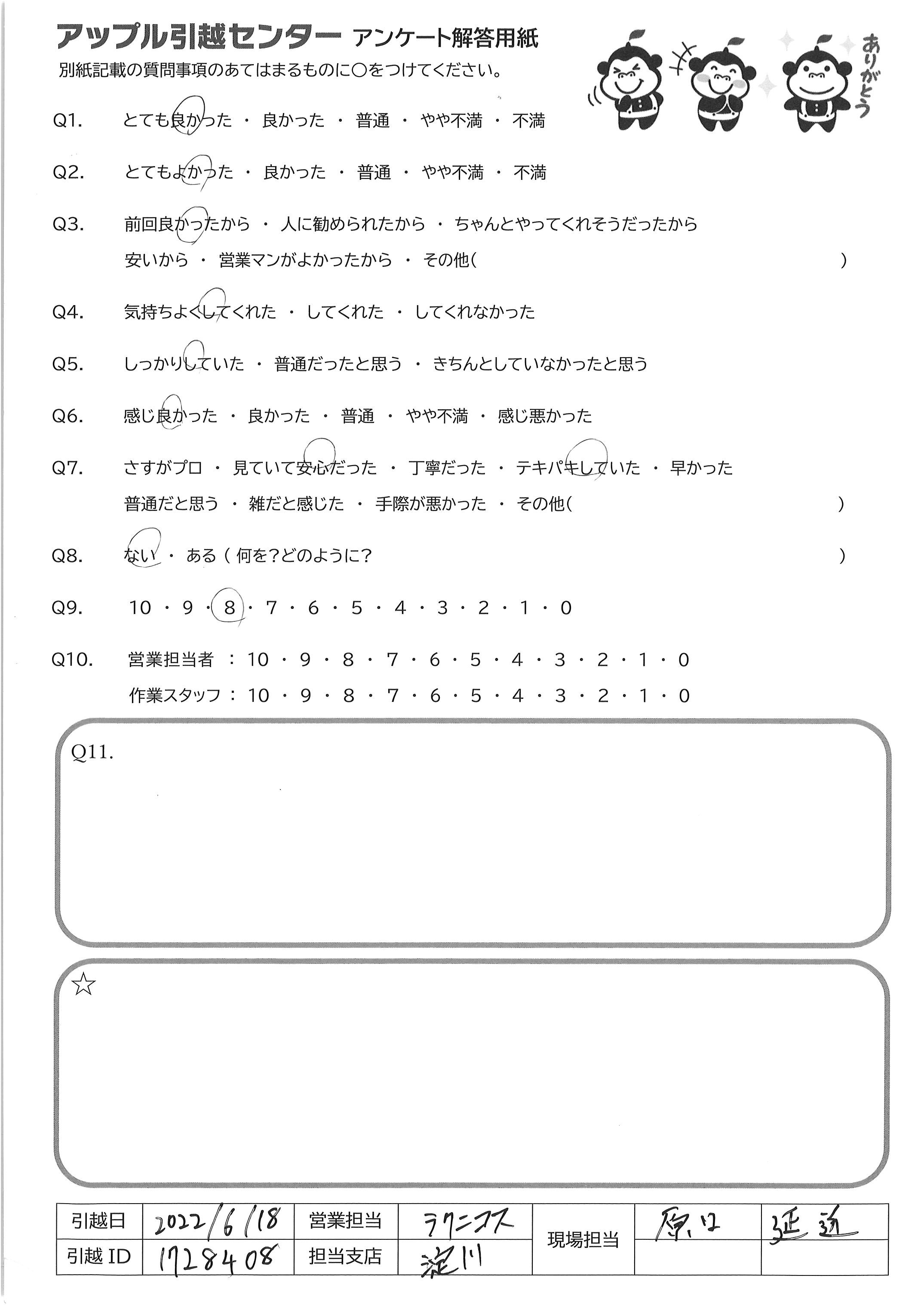 引越し日:2022年06月18日 エリア:東京都江東区