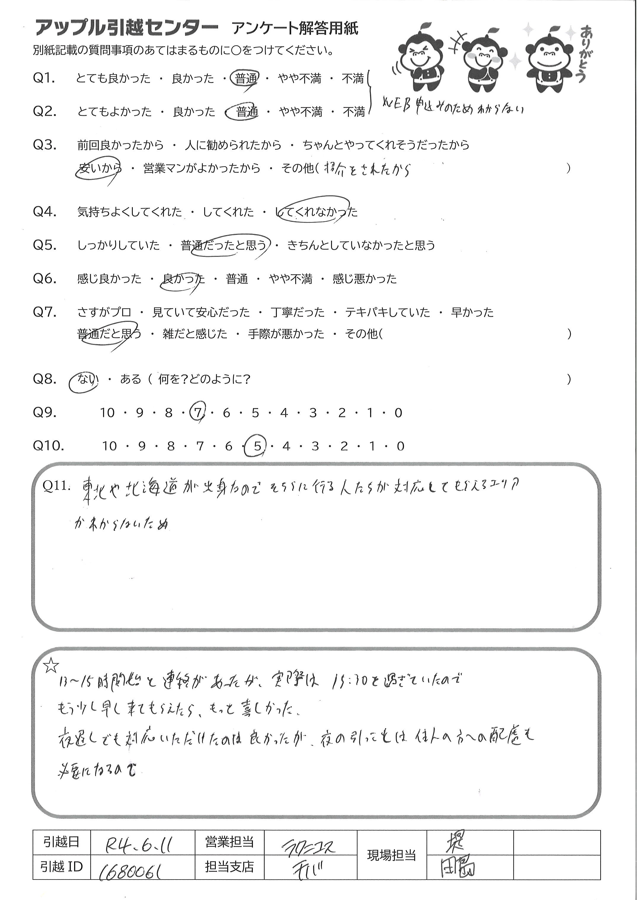アップル引越センターでは、面映いお褒めの言葉も、胸に突き刺さるお叱りのコメントも、