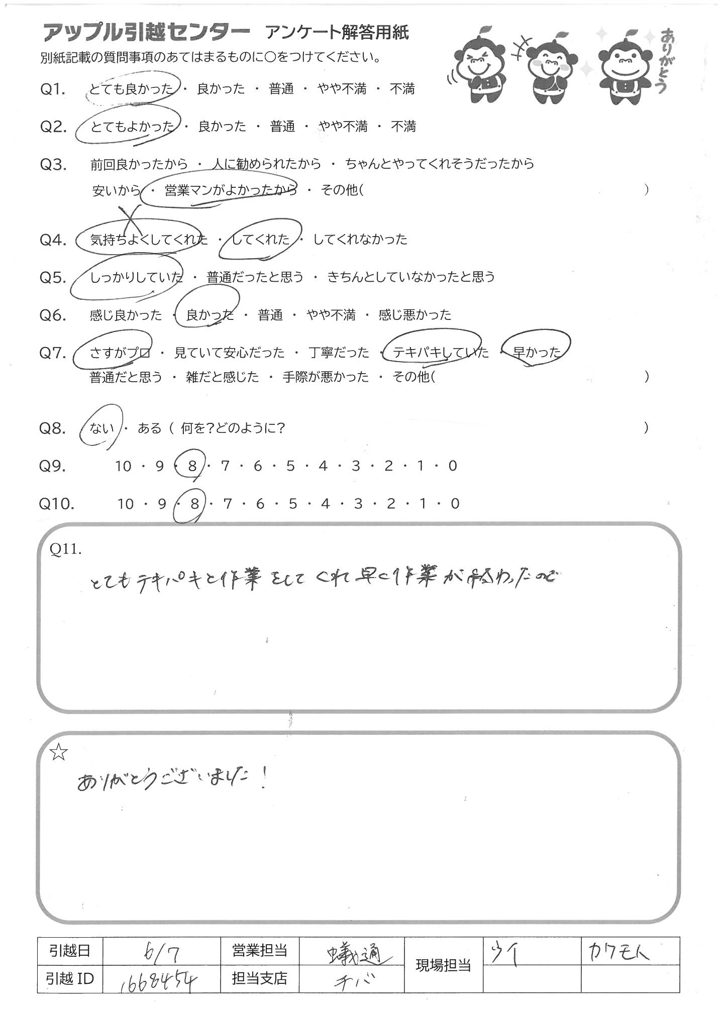引越し日:2022年06月08日 エリア:千葉県船橋市