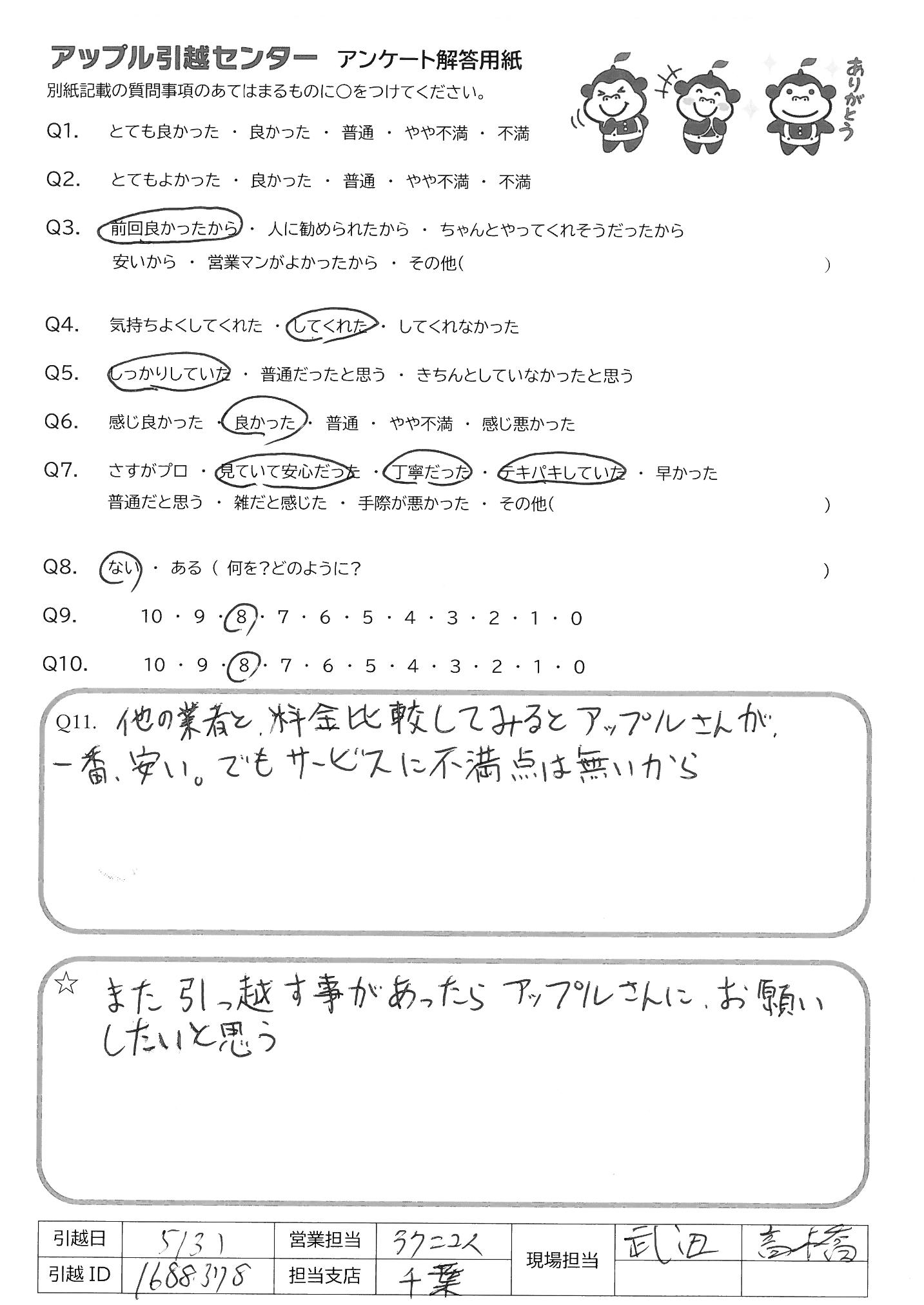 A.また引っ越すことがあったらアップルさんにお願いしたいと思う