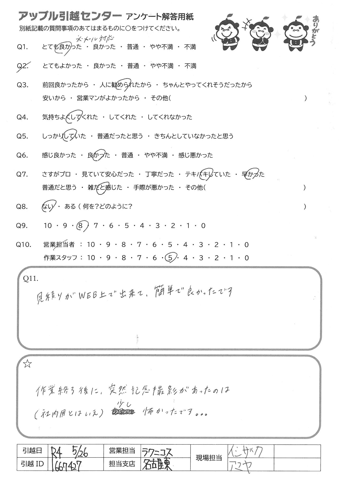 引越し日:2022年05月26日 エリア:愛知県一宮市