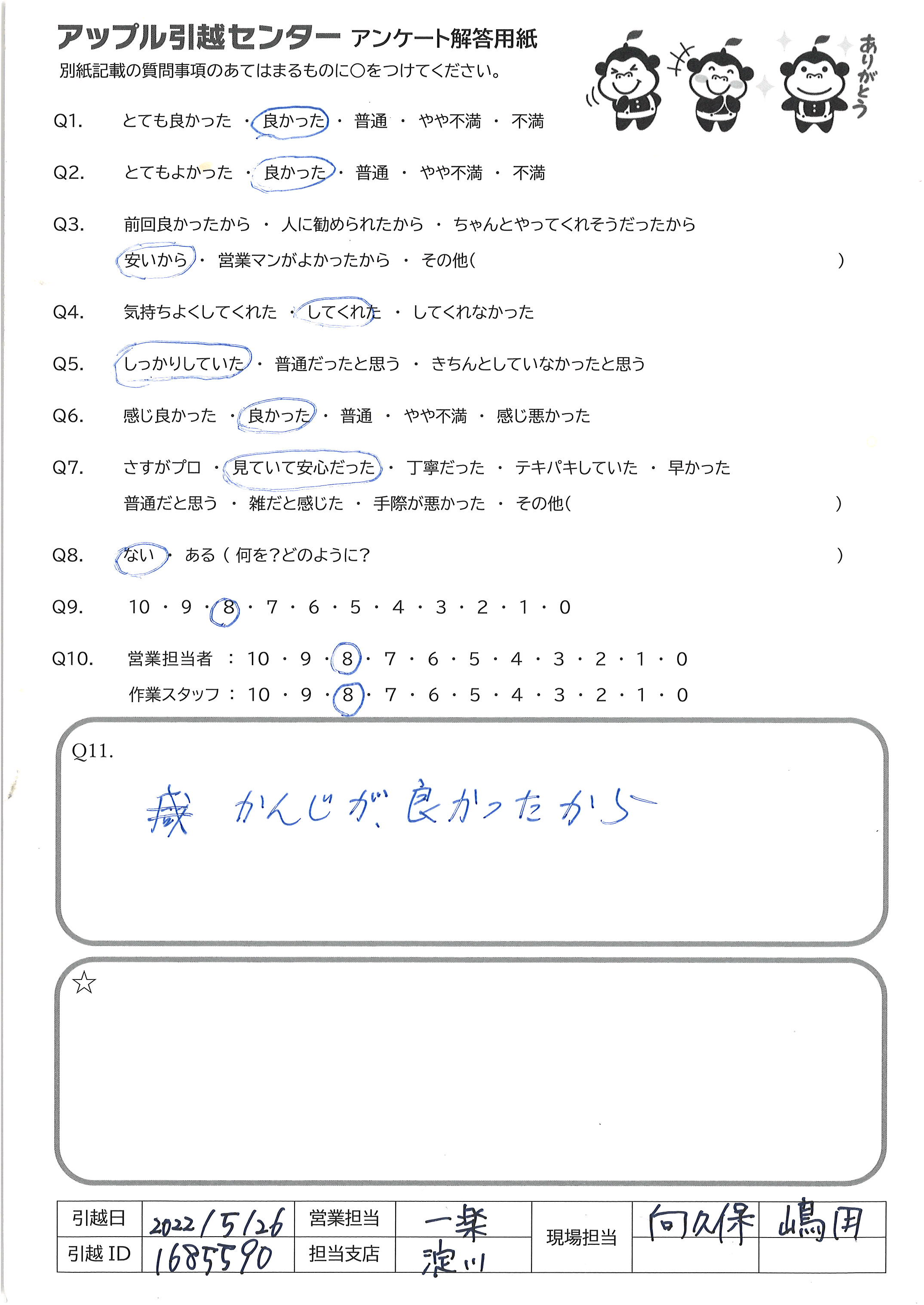 アップル引越センターでは、面映いお褒めの言葉も、胸に突き刺さるお叱りのコメントも、