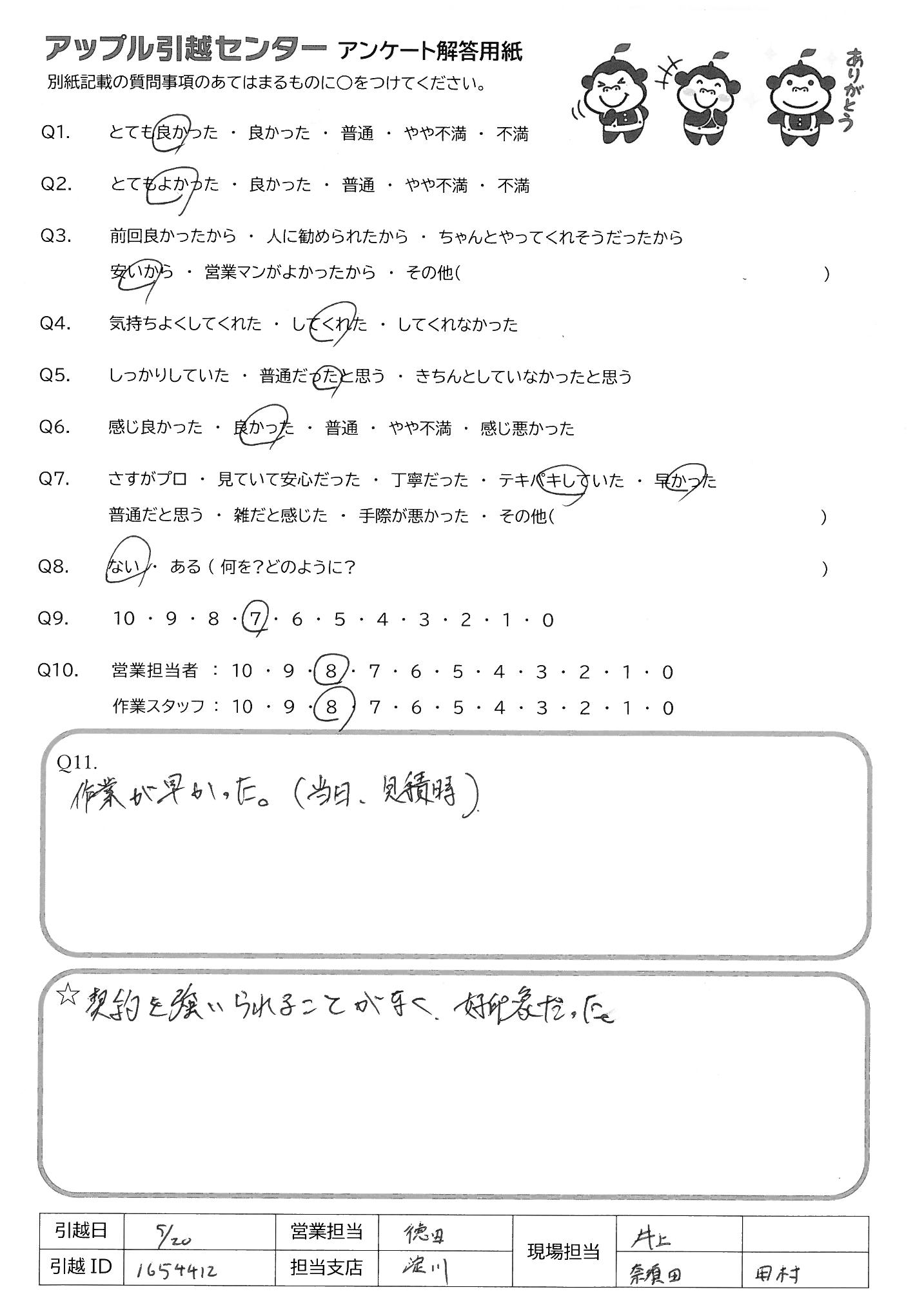 A.作業が早かった(当日、見積時)