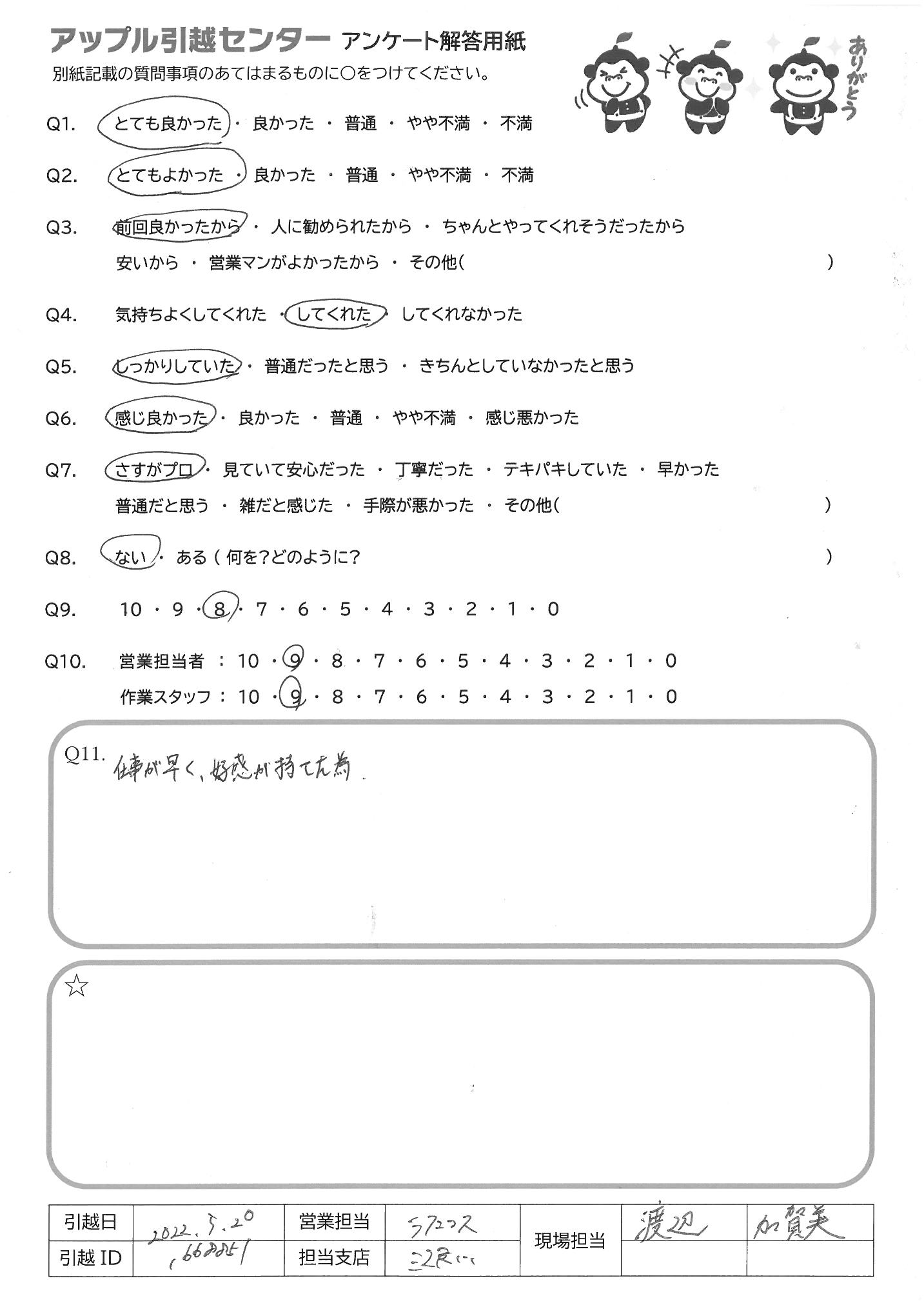 引越し日:2022年05月20日 エリア:神奈川県横浜市港北区