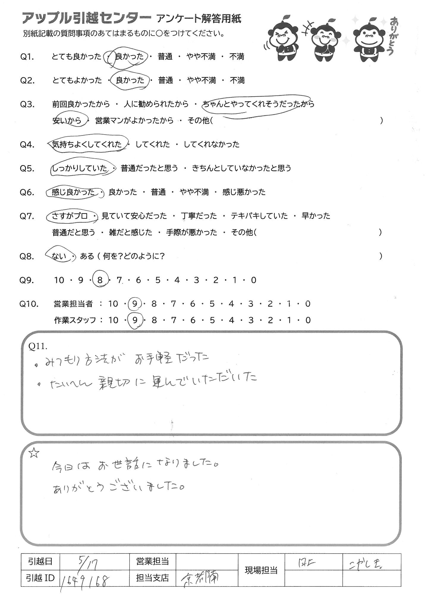 A.・みつもり方法がお手軽だった ・たいへん親切に運んでいただいた