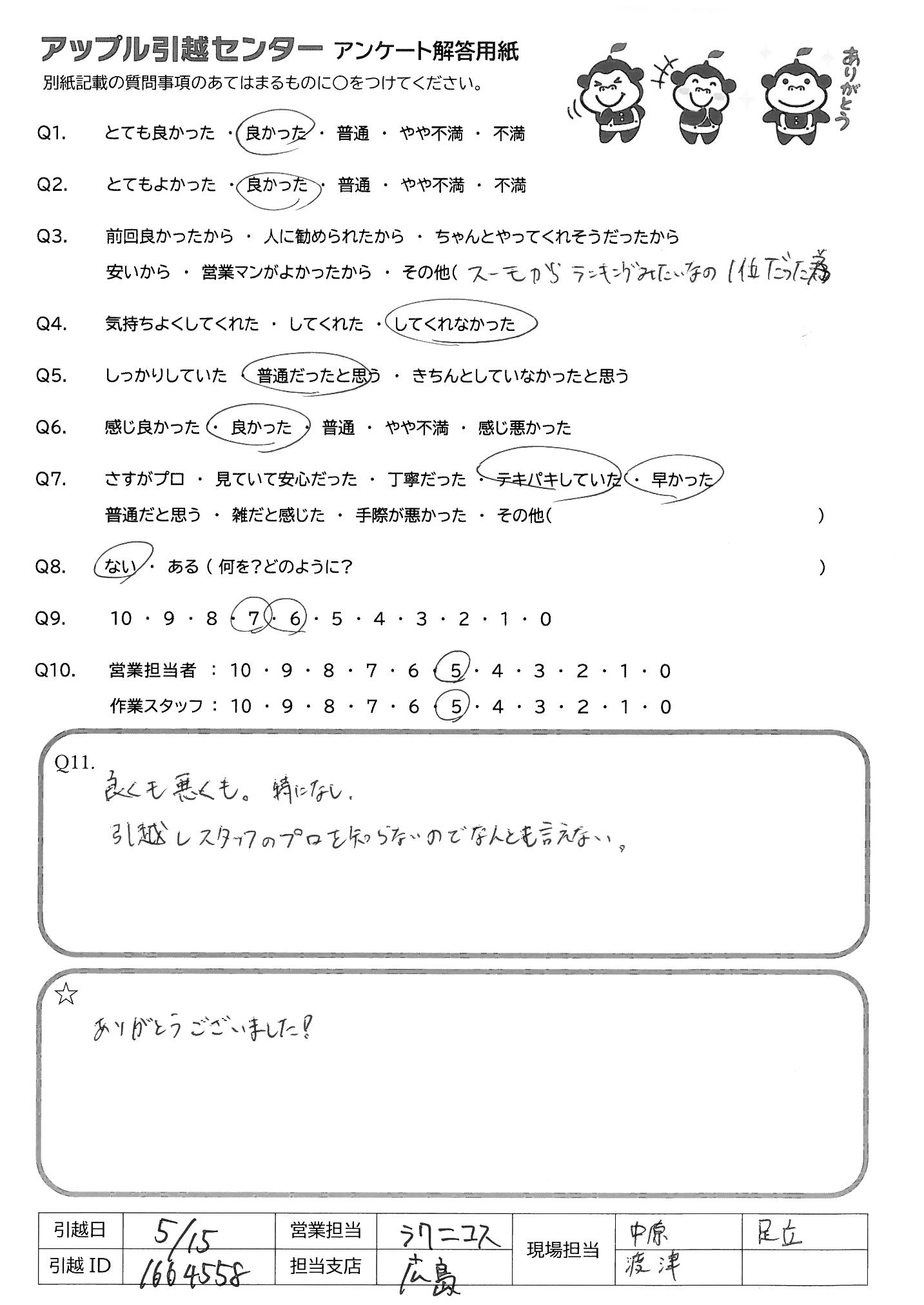 引越し日:2022年05月15日 エリア:広島県広島市安佐南区