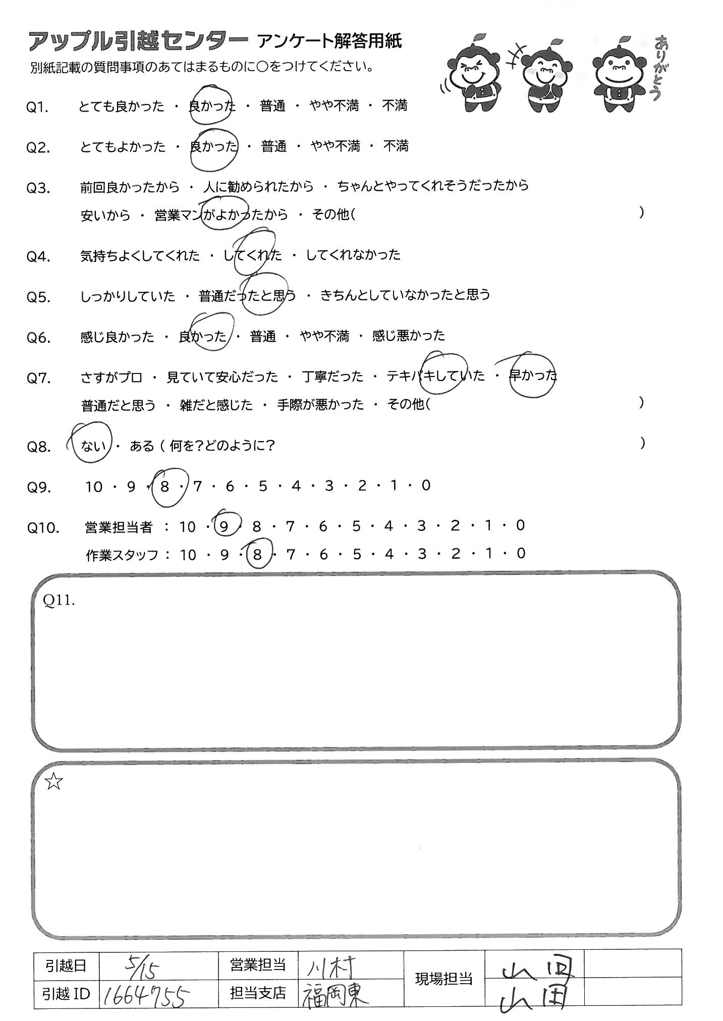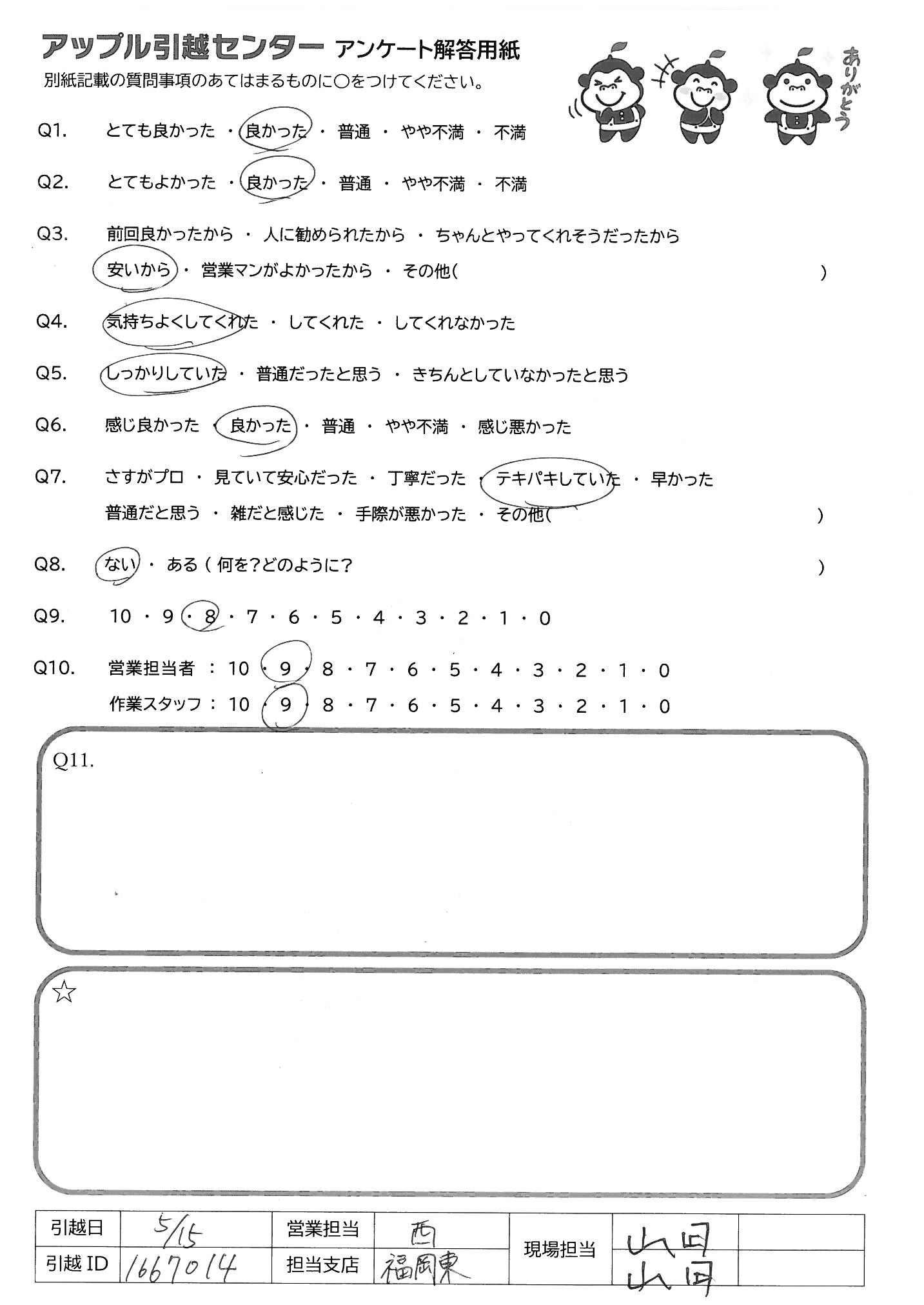 引越し日:2022年05月15日 エリア:福岡県福岡市中央区