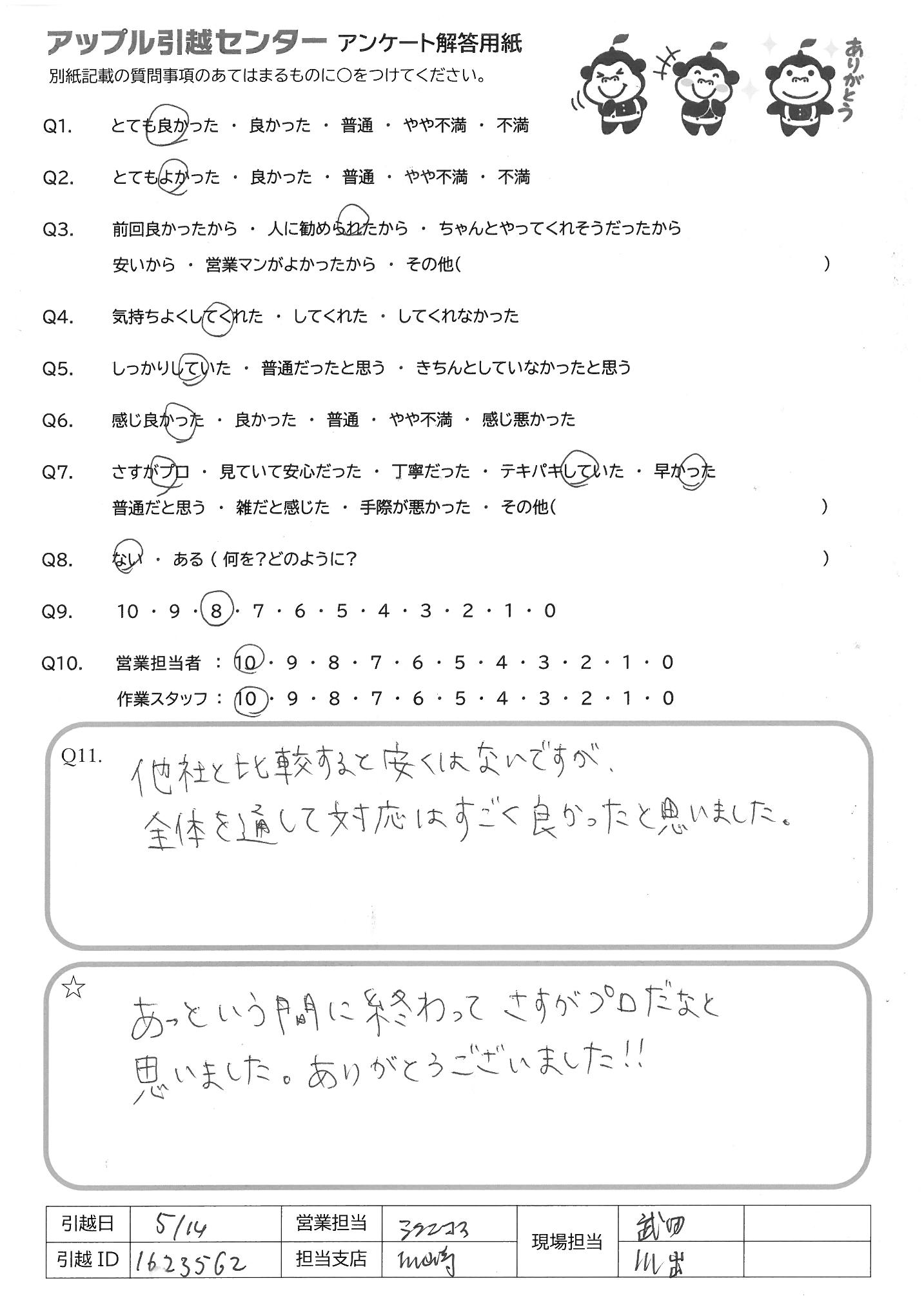 引越し日:2022年05月14日 エリア:大阪府東大阪市
