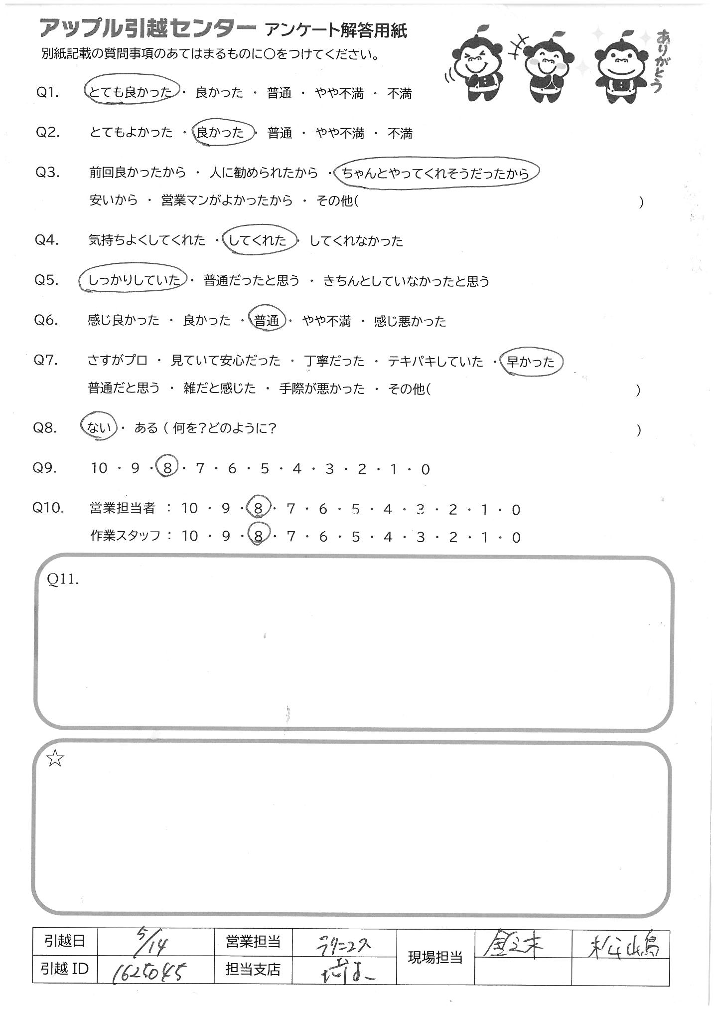 引越し日:2022年05月14日 エリア:大阪府八尾市