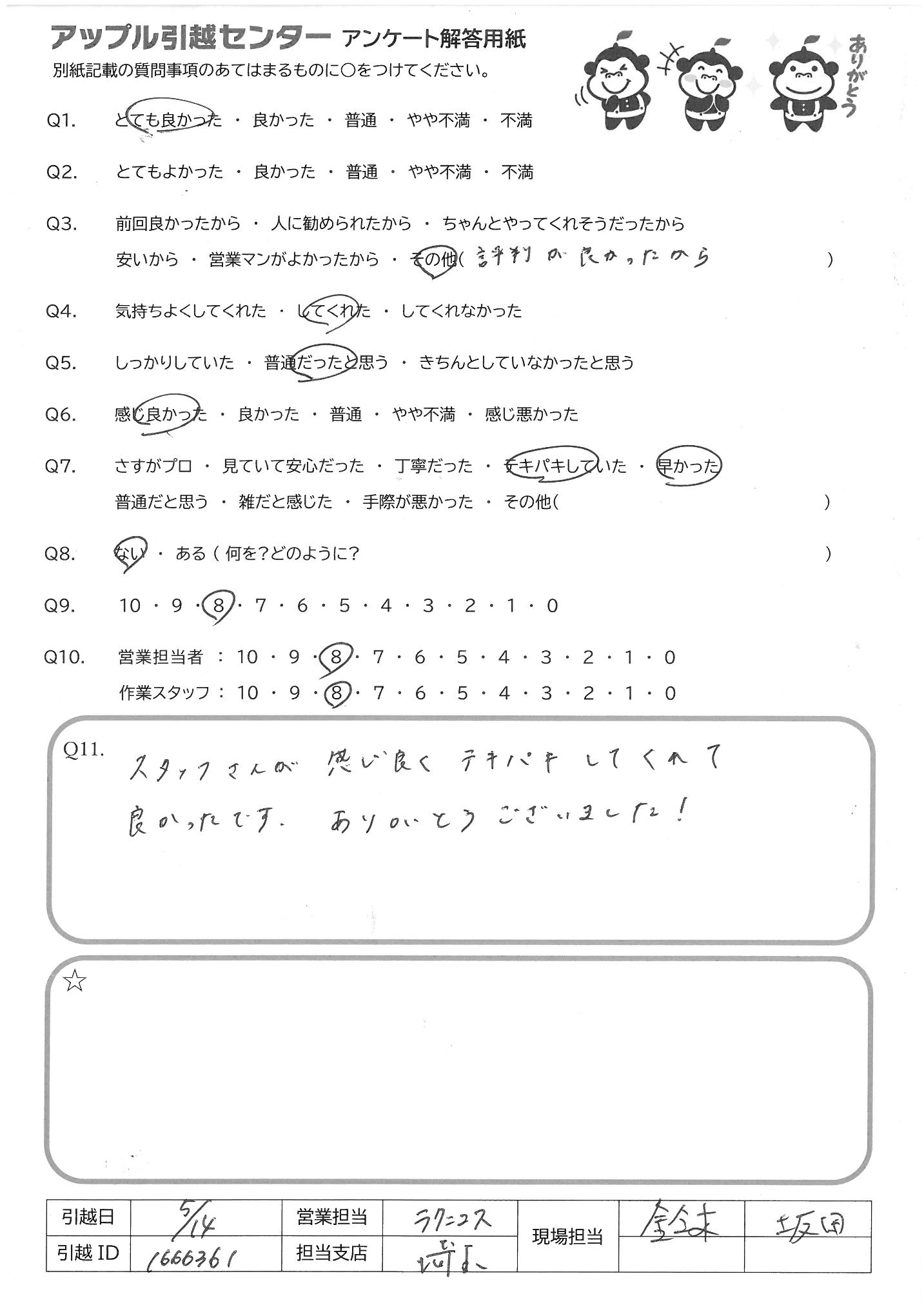 引越し日:2022年05月14日 エリア:埼玉県越谷市