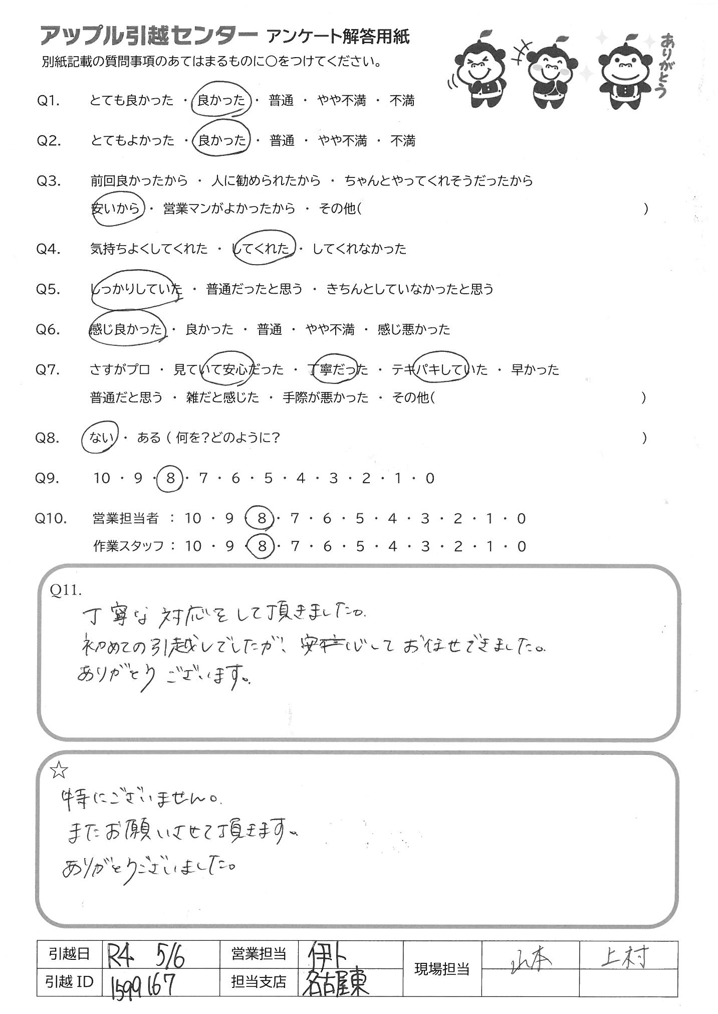 引越し日:2022年05月06日 エリア:兵庫県伊丹市