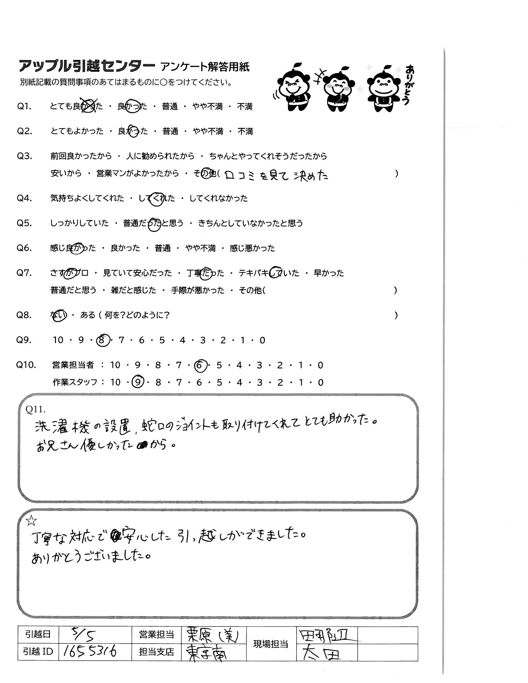 A.また引越しの際にはお願いしたいと思います。ありがとうございました!