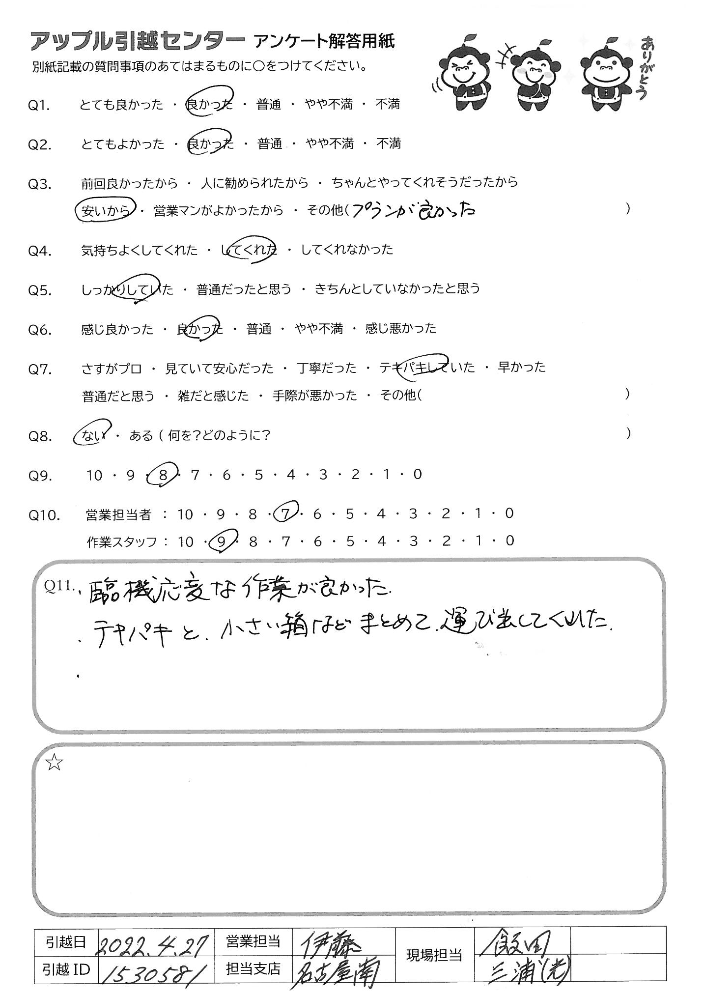 引越し日:2022年04月27日 エリア:愛知県東海市
