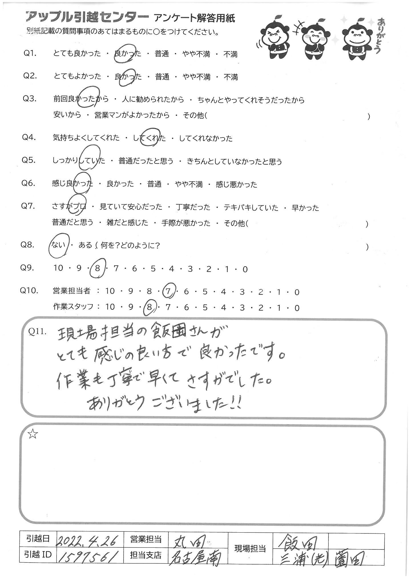 引越し日:2022年04月26日 エリア:愛知県豊明市