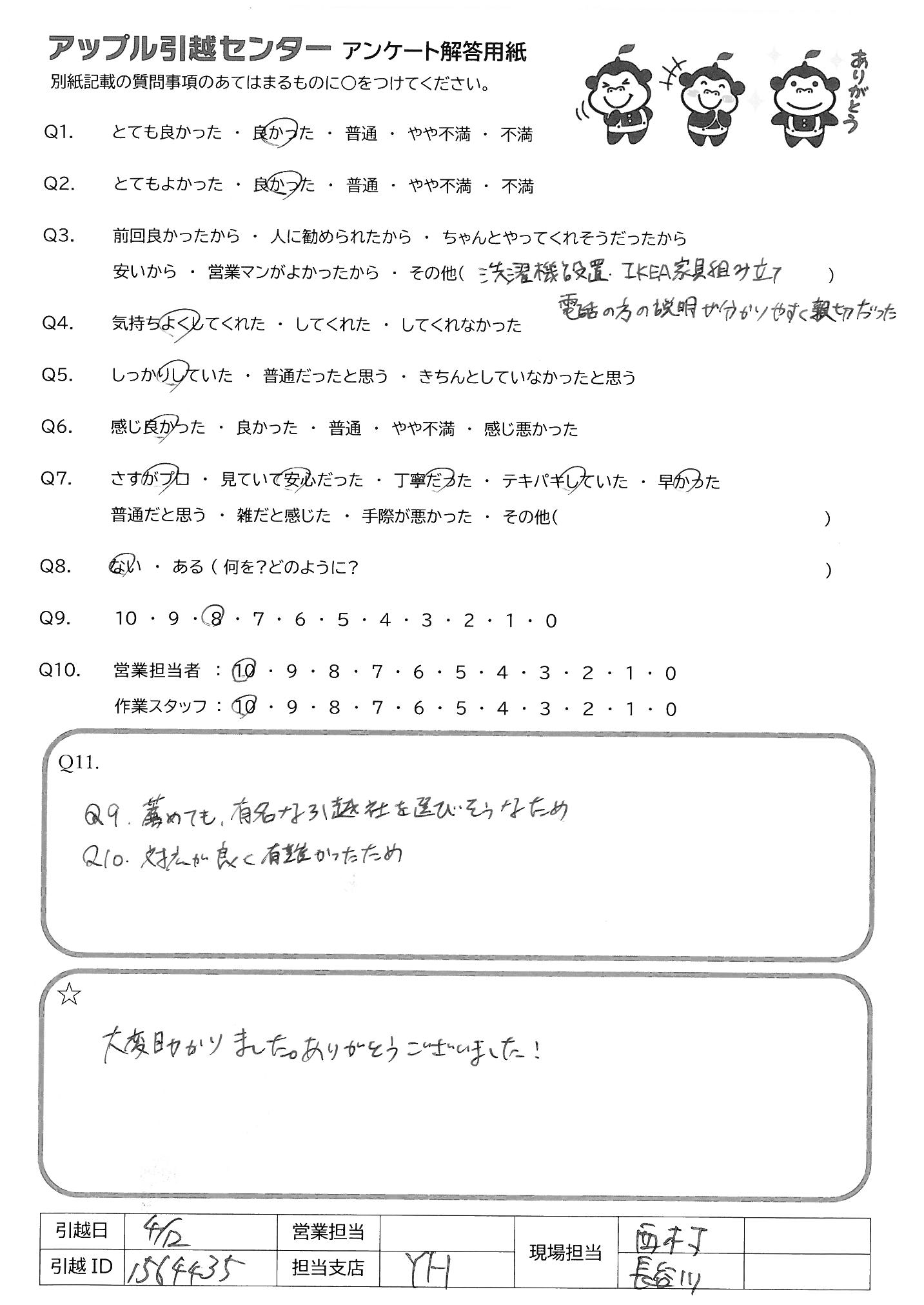 A.4回目となりますが、今回も当日の作業のお兄さんたちが 感じのいいひとで、とてもよかったデス ありがとうございました