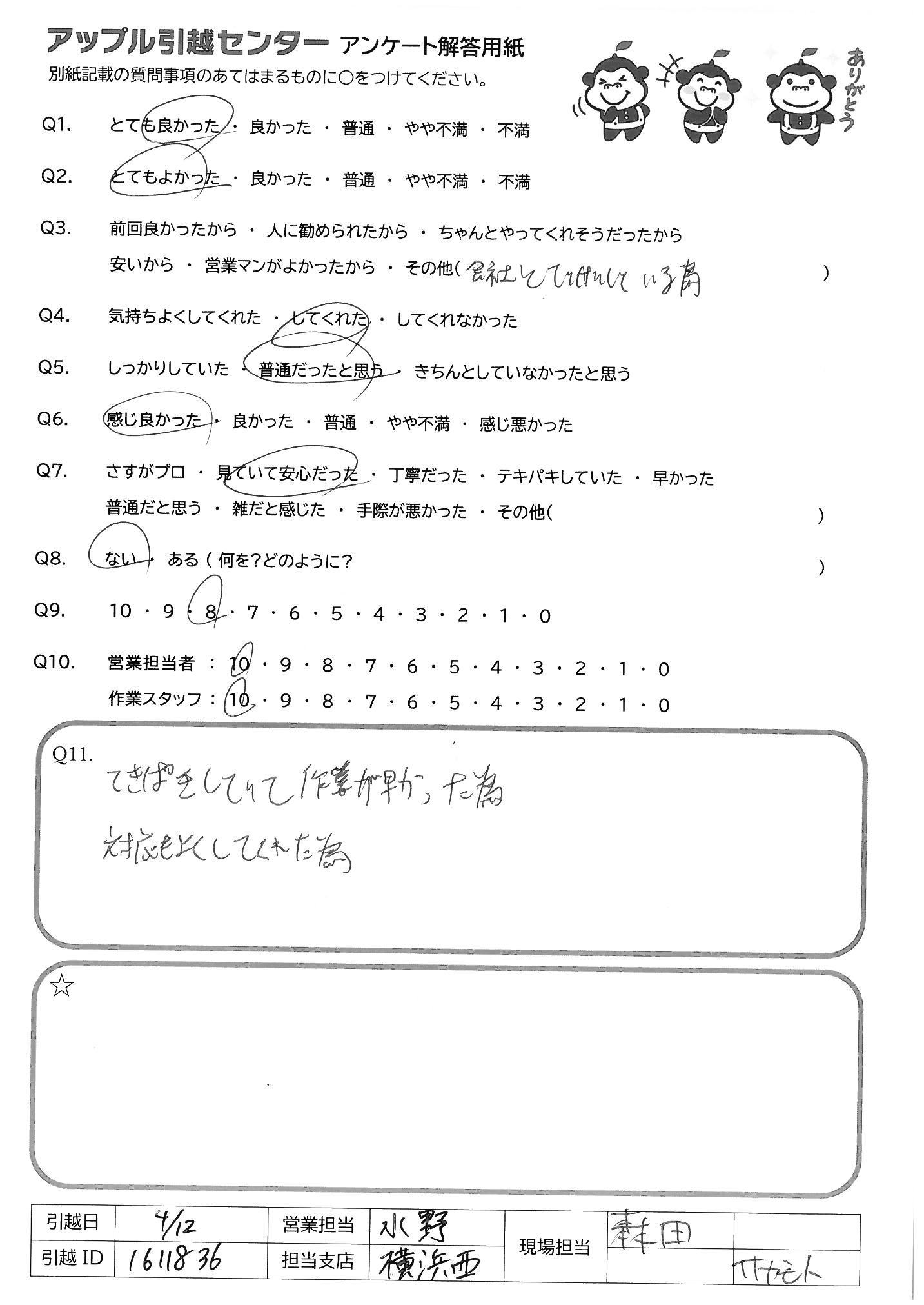 A.てきぱきしていて作業が早かった為 対応もよくしてくれた為