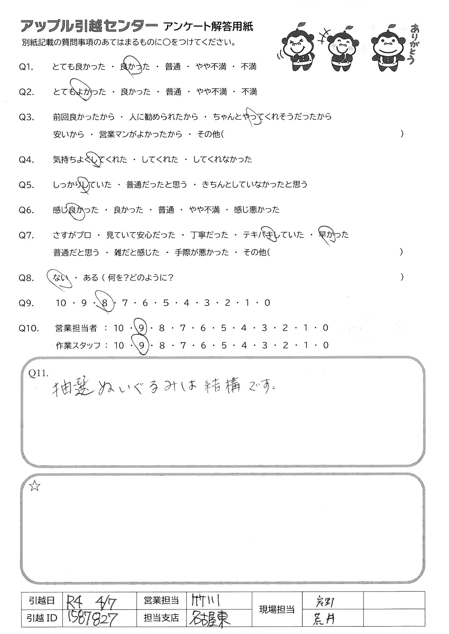 引越し日:2022年04月06日 エリア:愛知県名古屋市東区