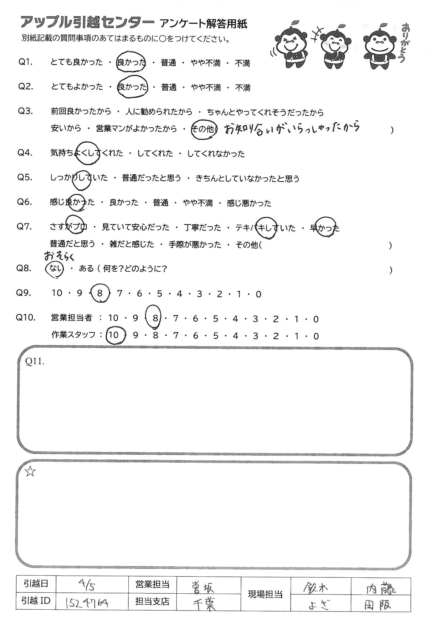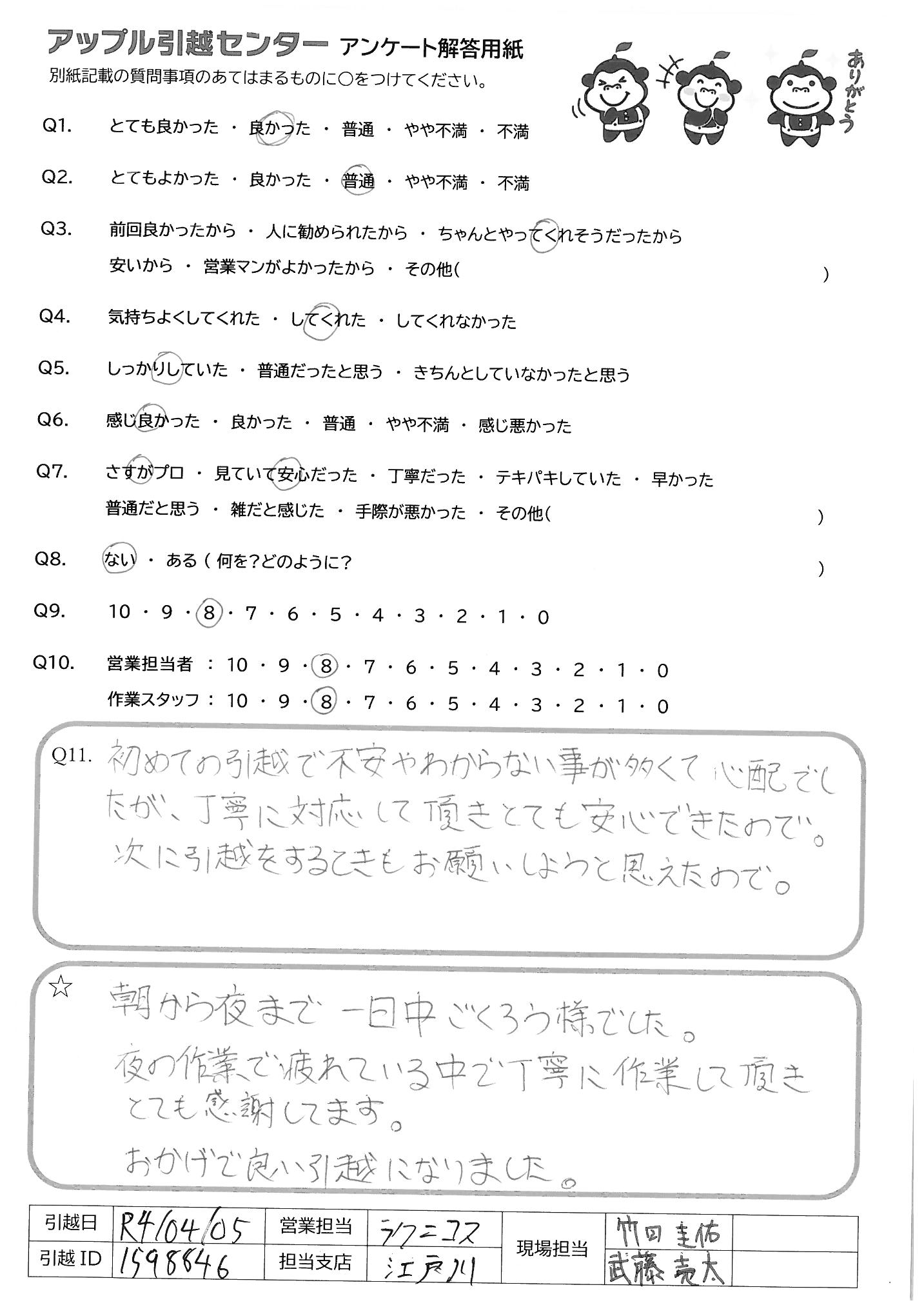 引越し日:2022年04月05日 エリア:東京都江東区