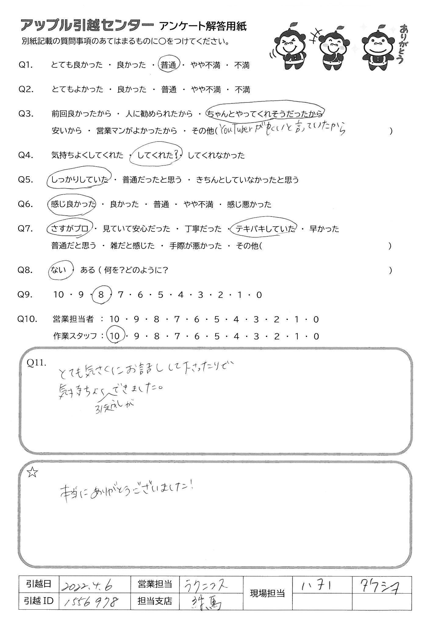 A.とても気さくにお話してくださったりで 気持ちよく引越しができました