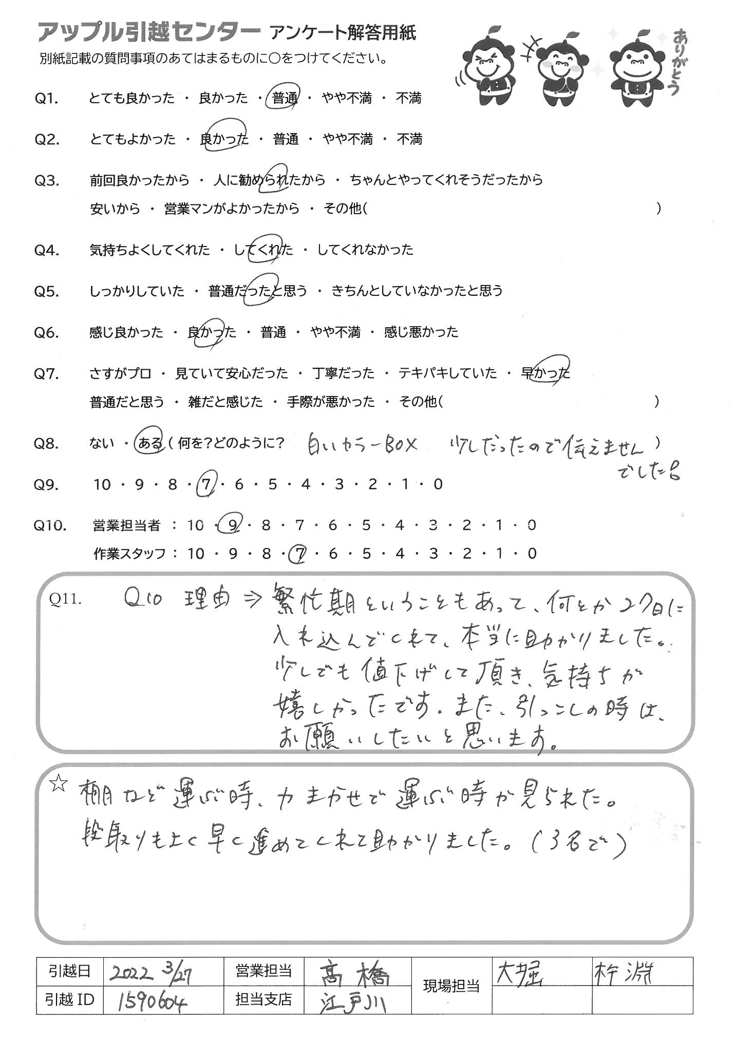 引越し日:2022年03月26日 エリア:東京都江東区
