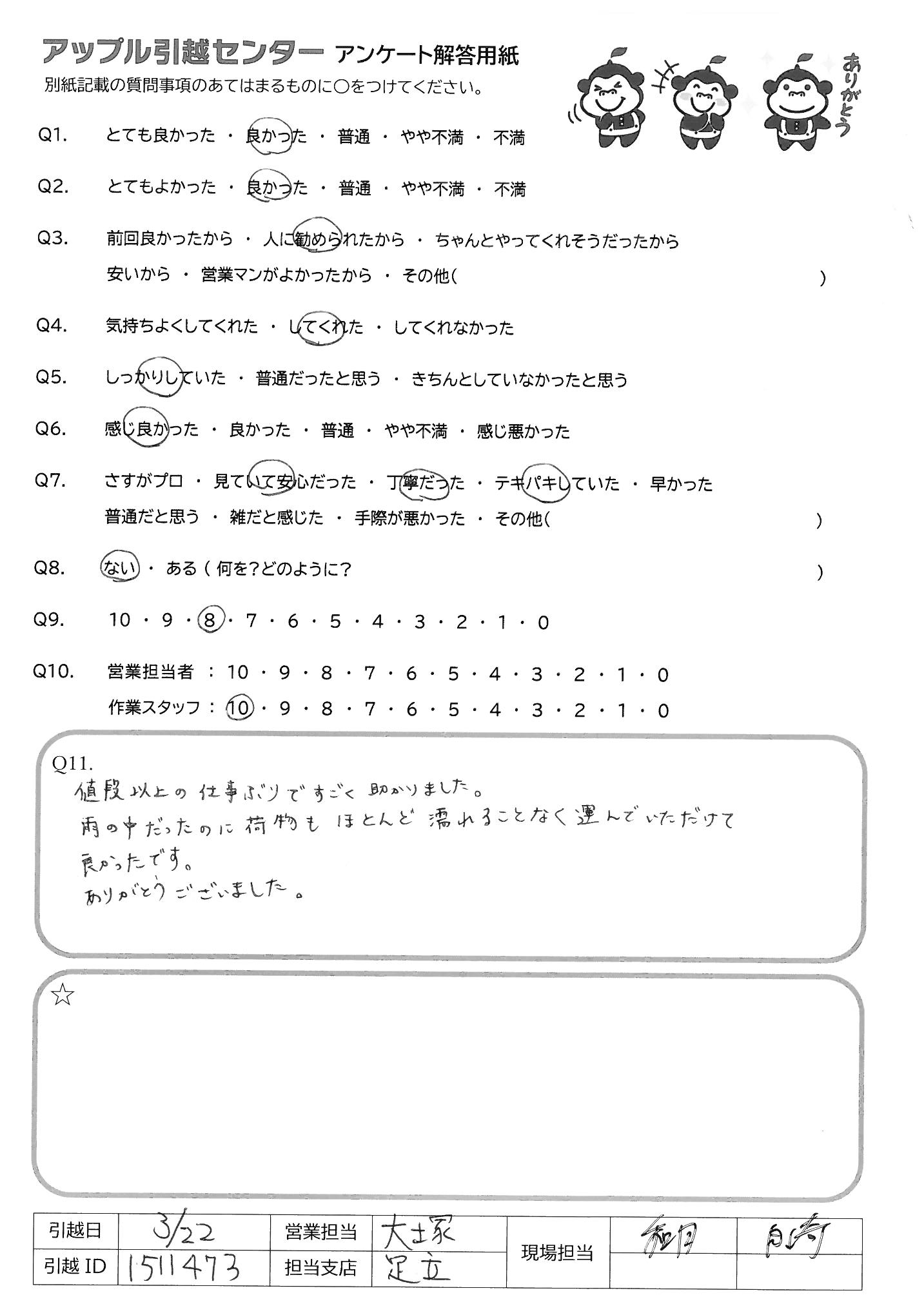 引越し日:2022年03月22日 エリア:東京都北区