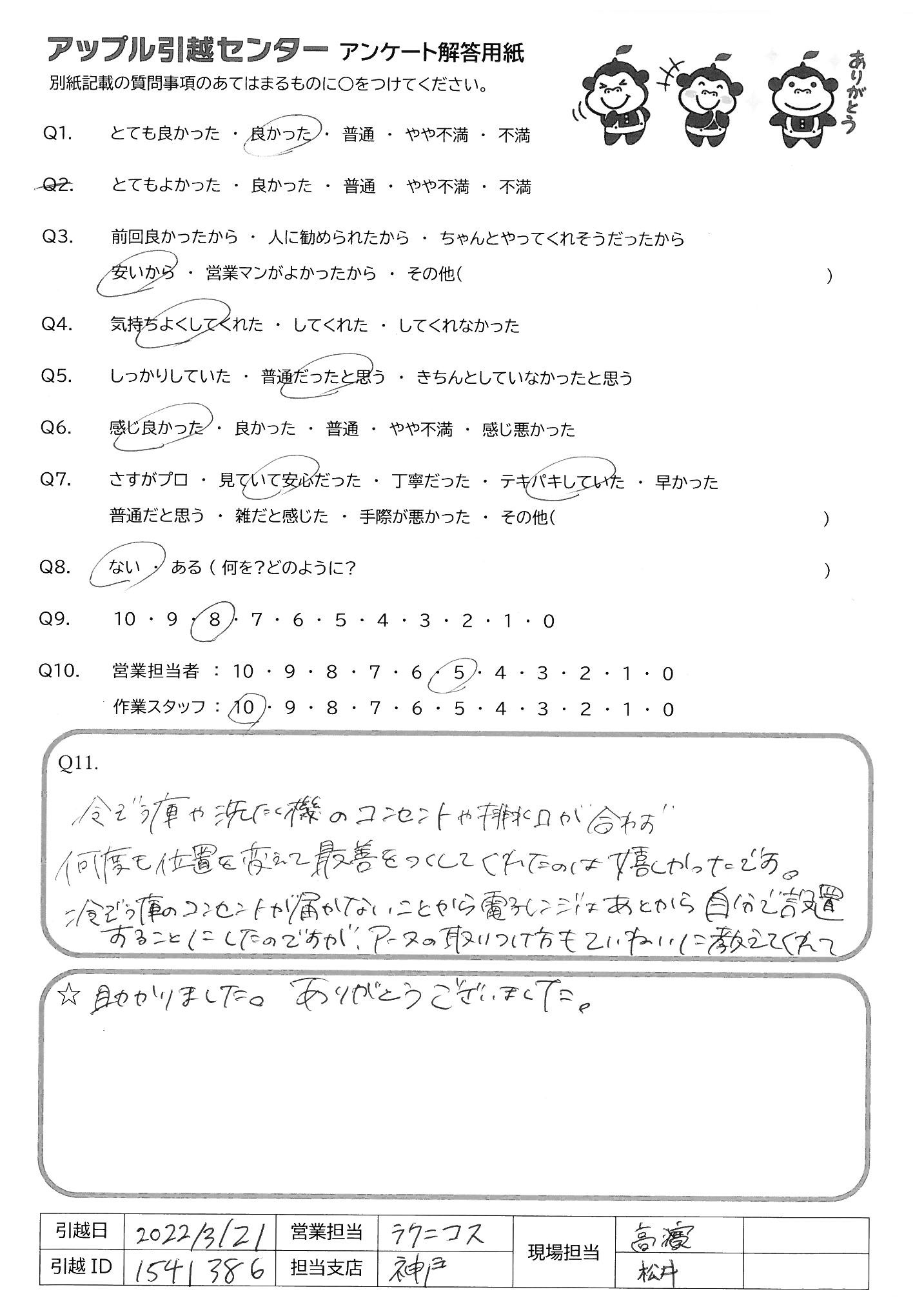 引越し日:2022年03月21日 エリア:兵庫県神戸市東灘区