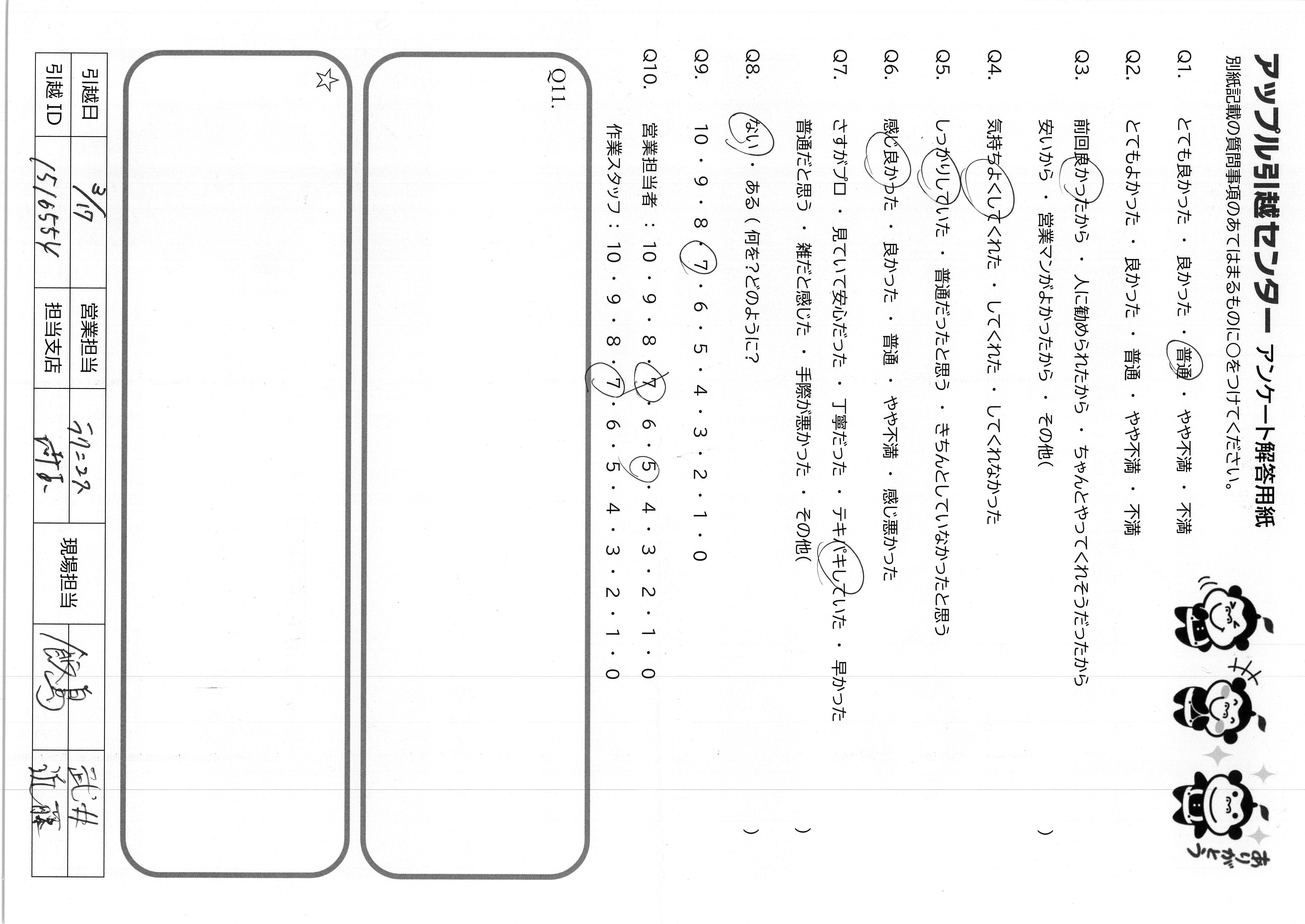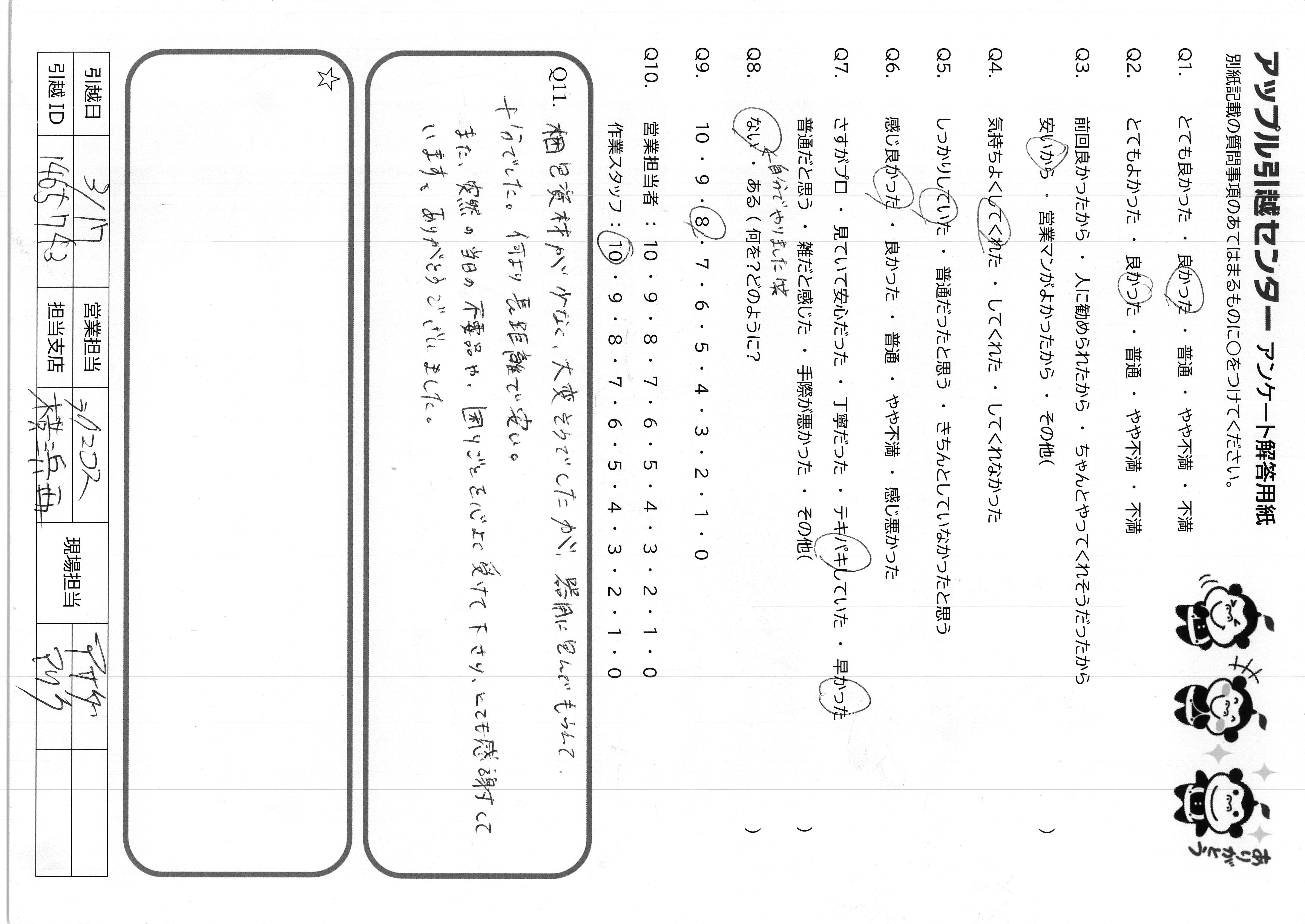 A.今回はとてもていねいに引越しをして下さり ありがとうございました!
