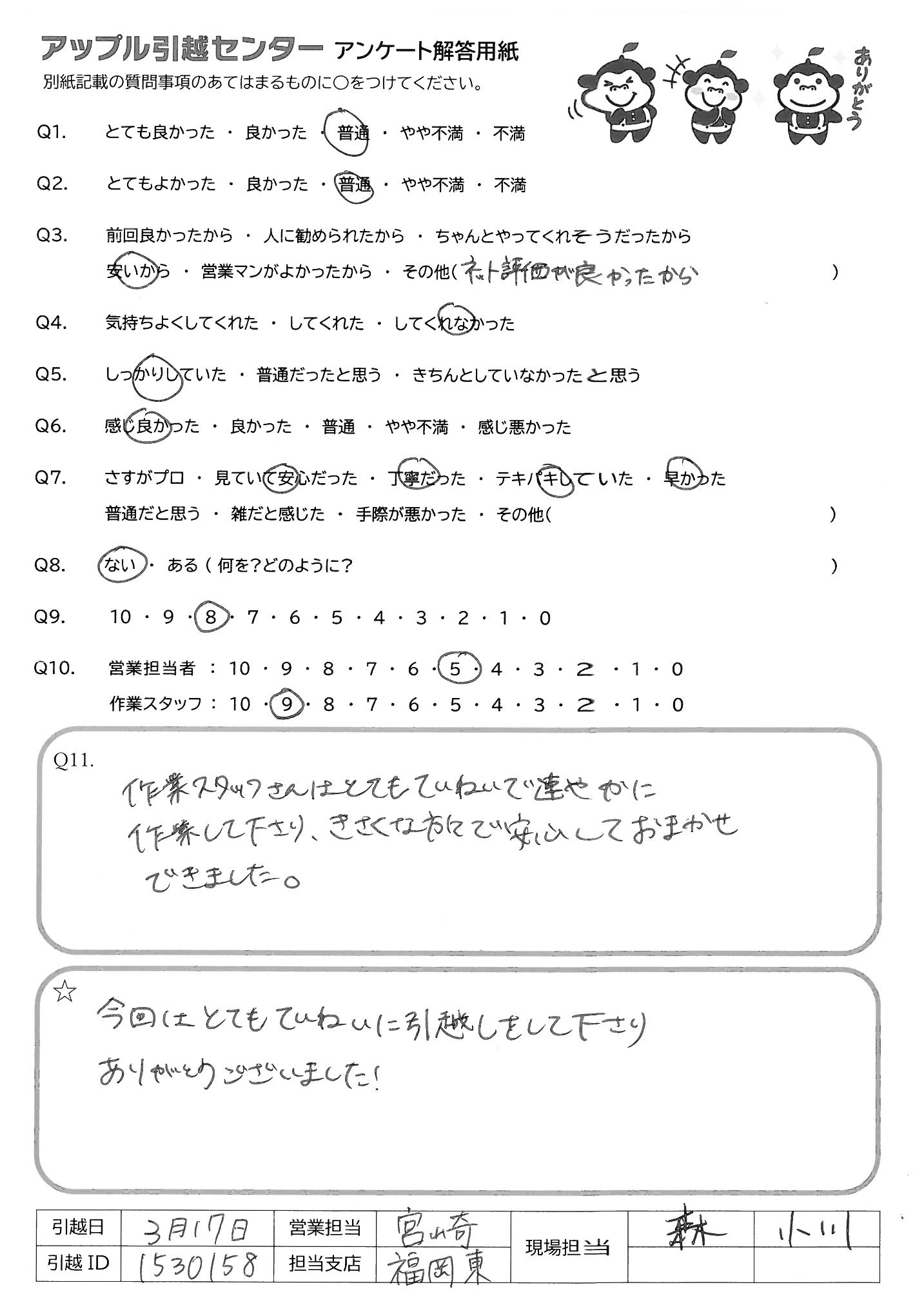 引越し日:2022年03月17日 エリア:福岡県北九州市小倉南区