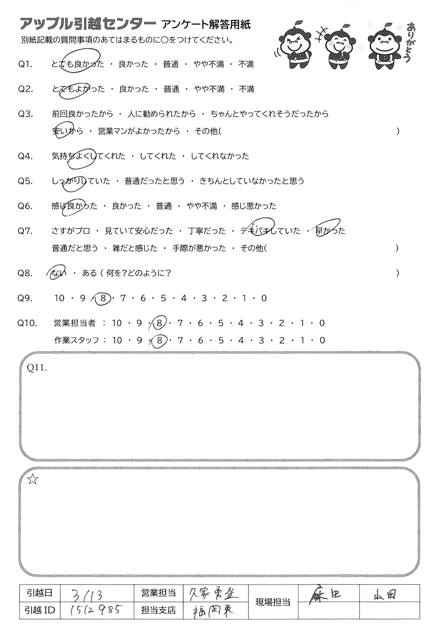 引越し日:2022年03月13日 エリア:福岡県春日市