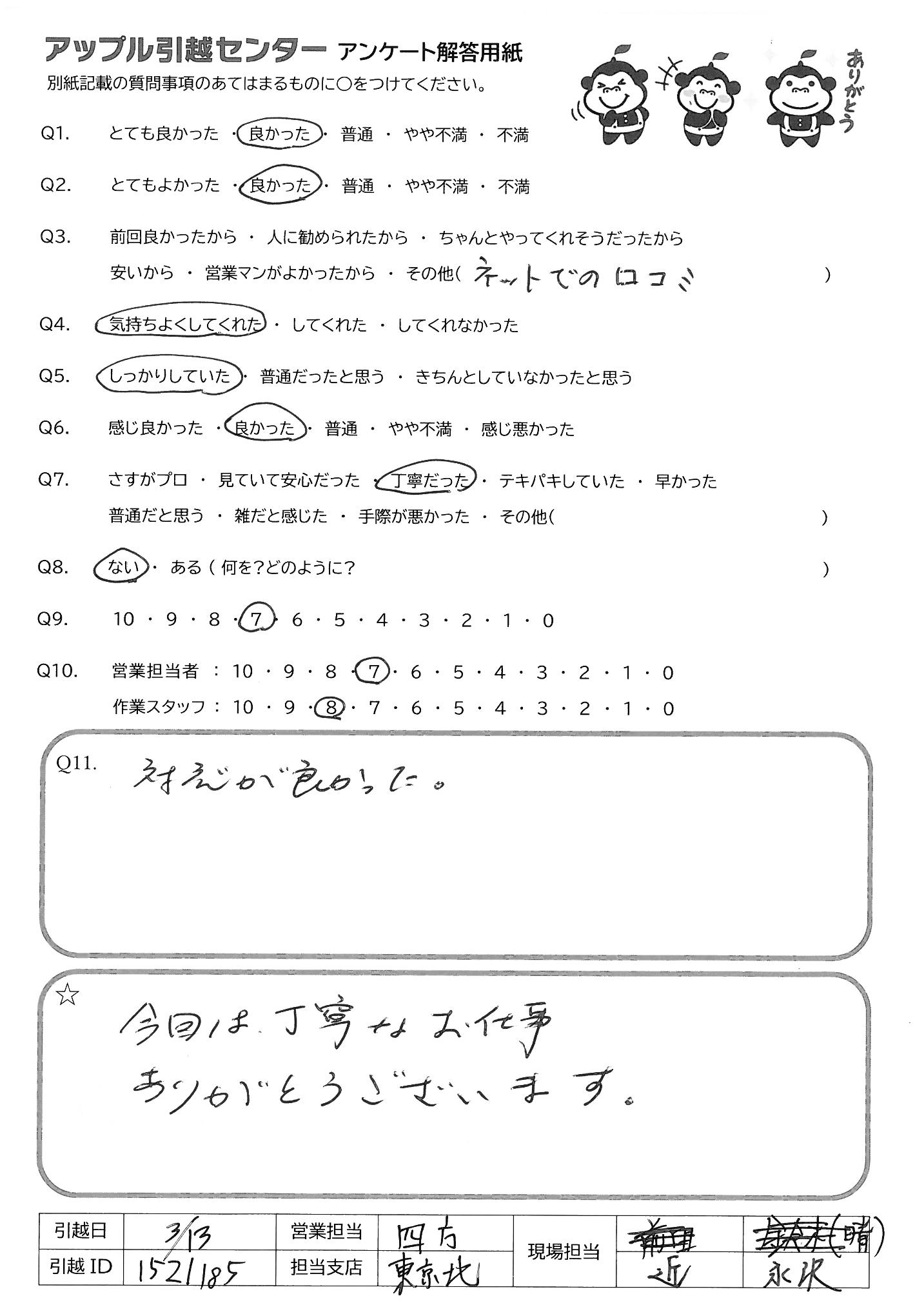 引越し日:2022年03月13日 エリア:東京都世田谷区