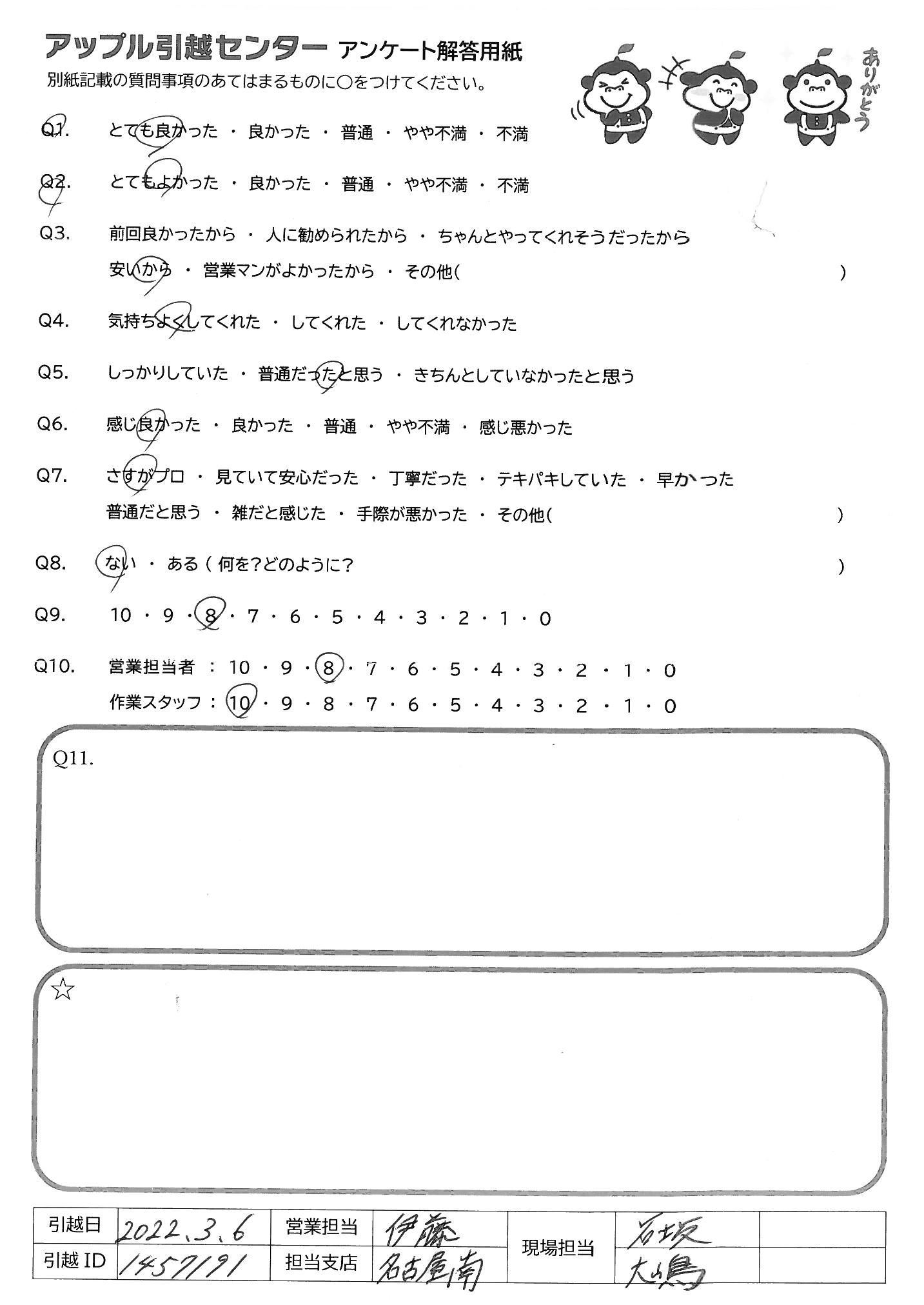 引越し日:2022年03月06日 エリア:愛知県名古屋市名東区