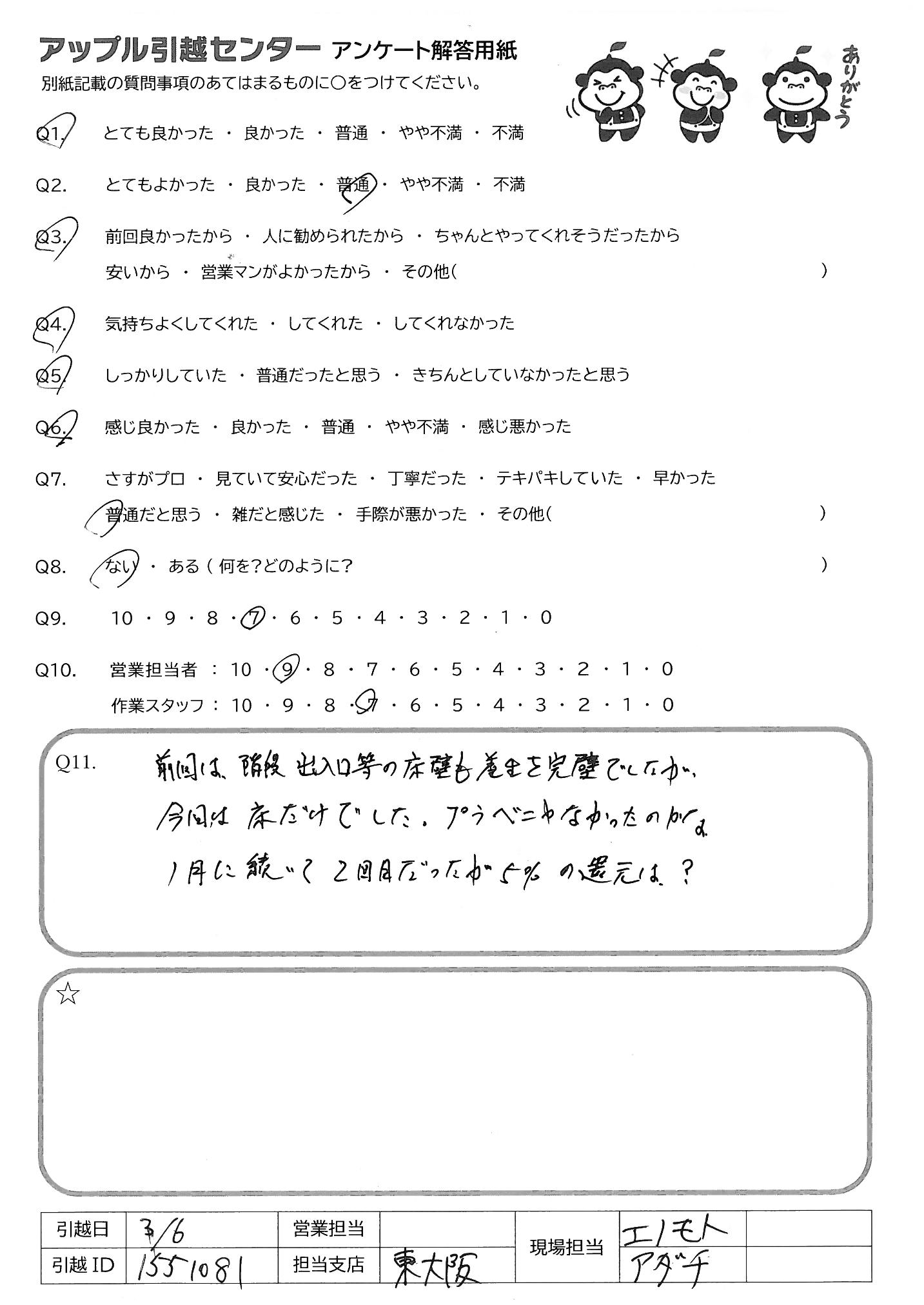 引越し日:2022年03月05日 エリア:大阪府大阪市淀川区