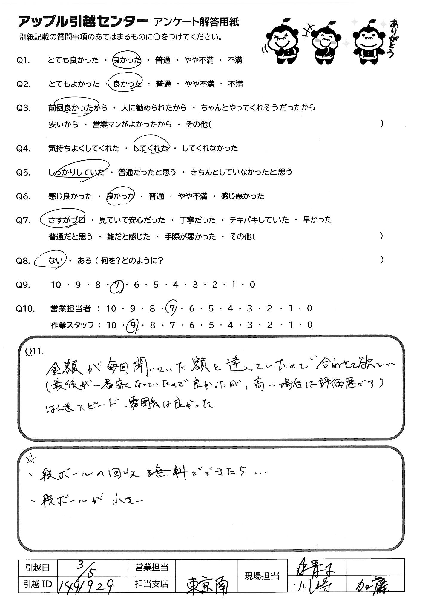 引越し日:2022年03月04日 エリア:東京都江東区