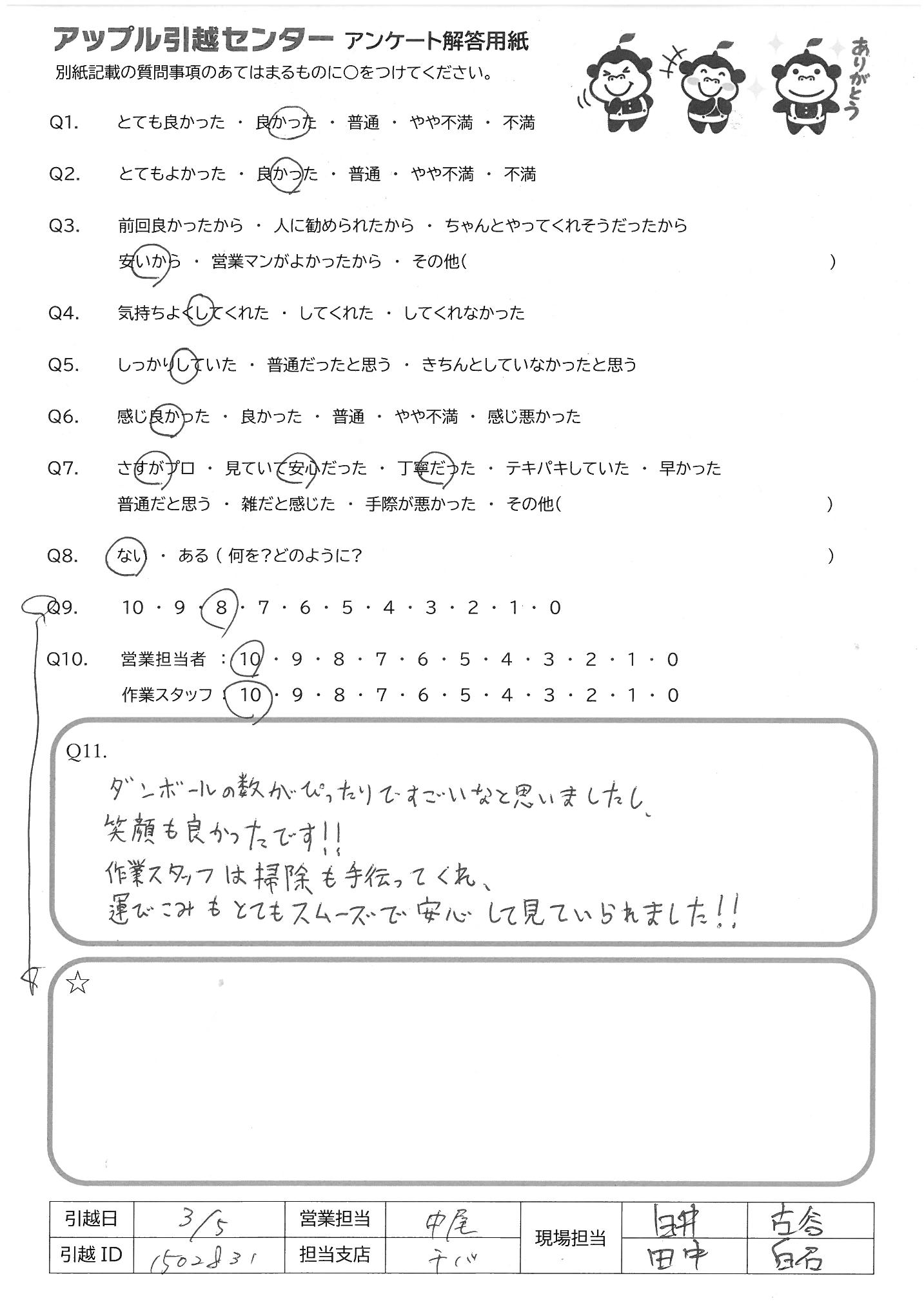 引越し日:2022年03月05日 エリア:千葉県船橋市