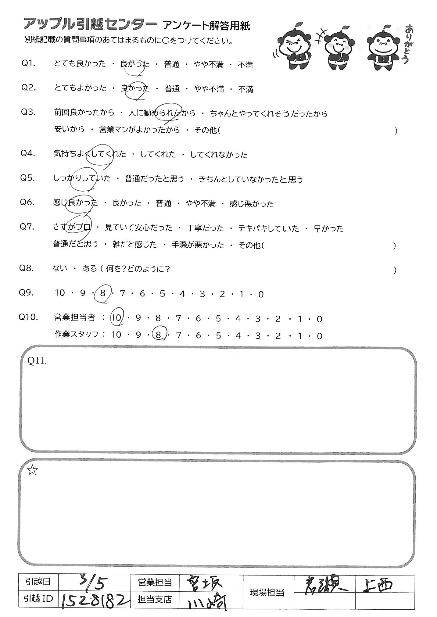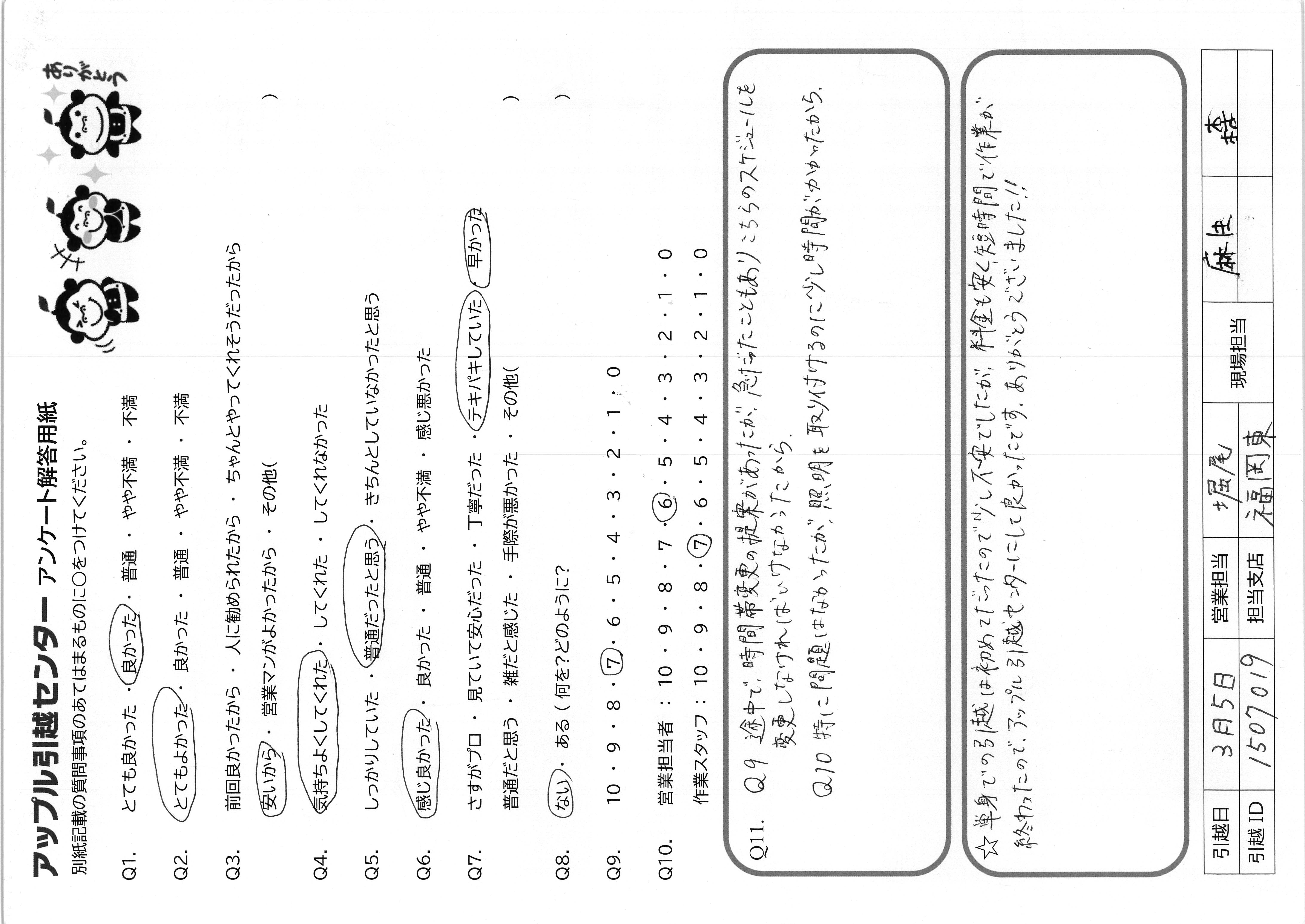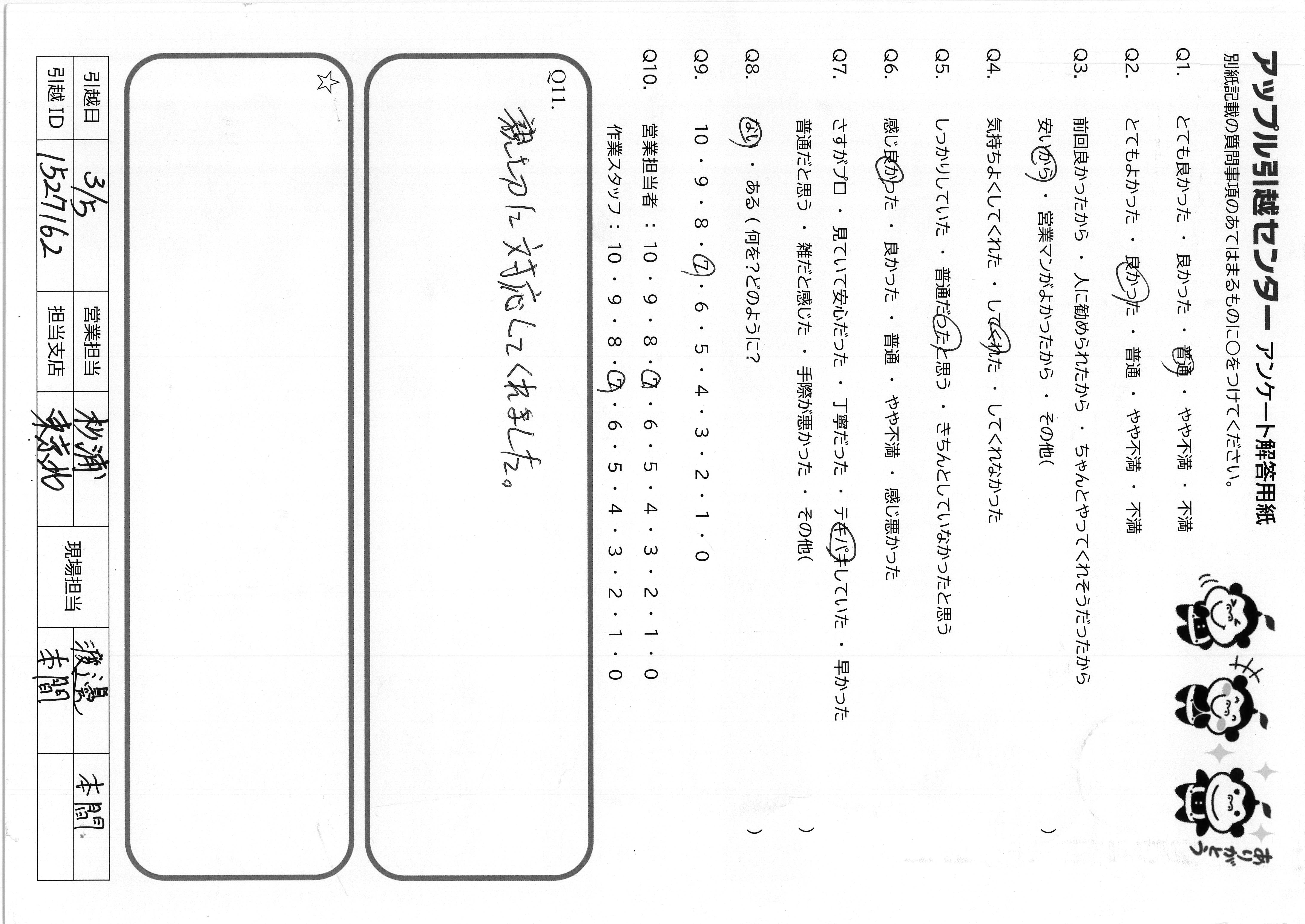 A.Q9.他社の金額よりも安くして頂いて満足です Q10 迅速な作業ありがとうございました