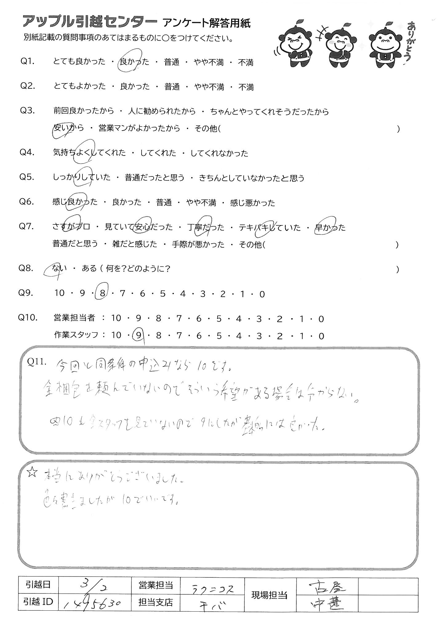 引越し日:2022年03月02日 エリア:愛知県名古屋市天白区