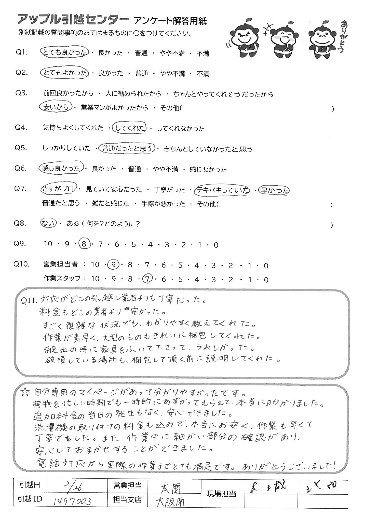 引越し日:2022年02月26日 エリア:大阪府大阪市西区