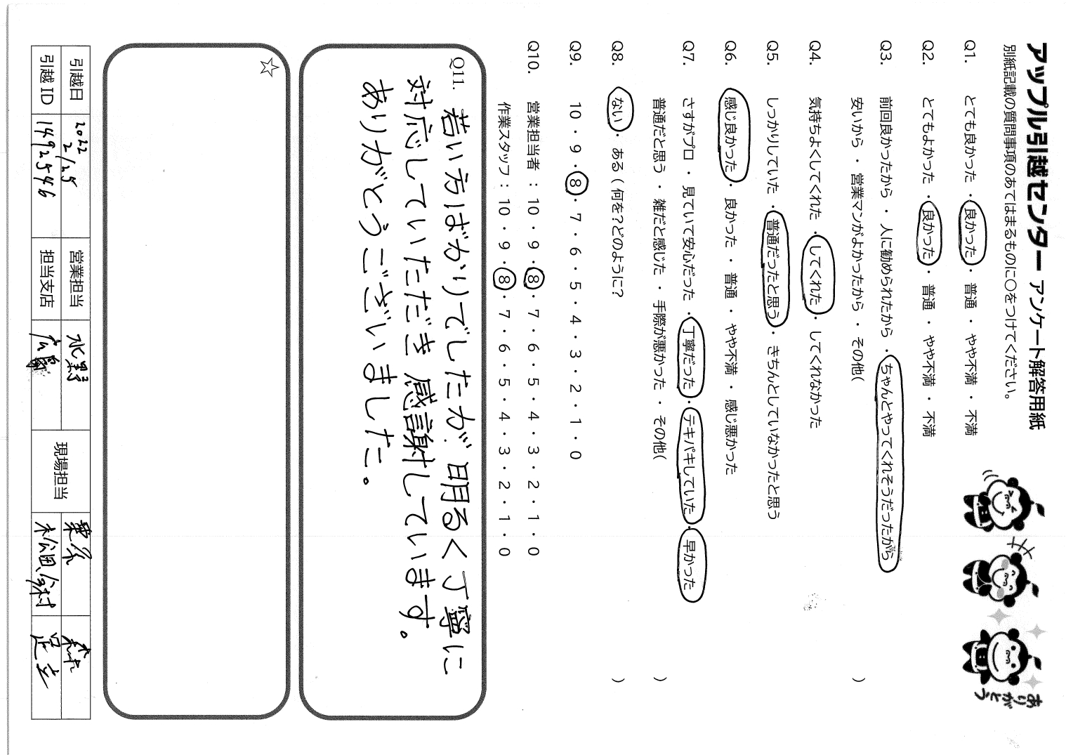 アップル引越センターでは、面映いお褒めの言葉も、胸に突き刺さるお叱りのコメントも、