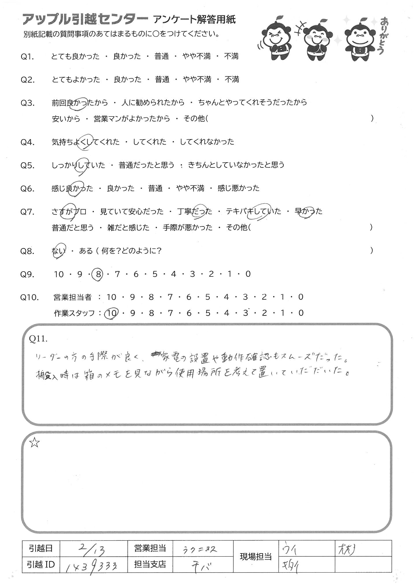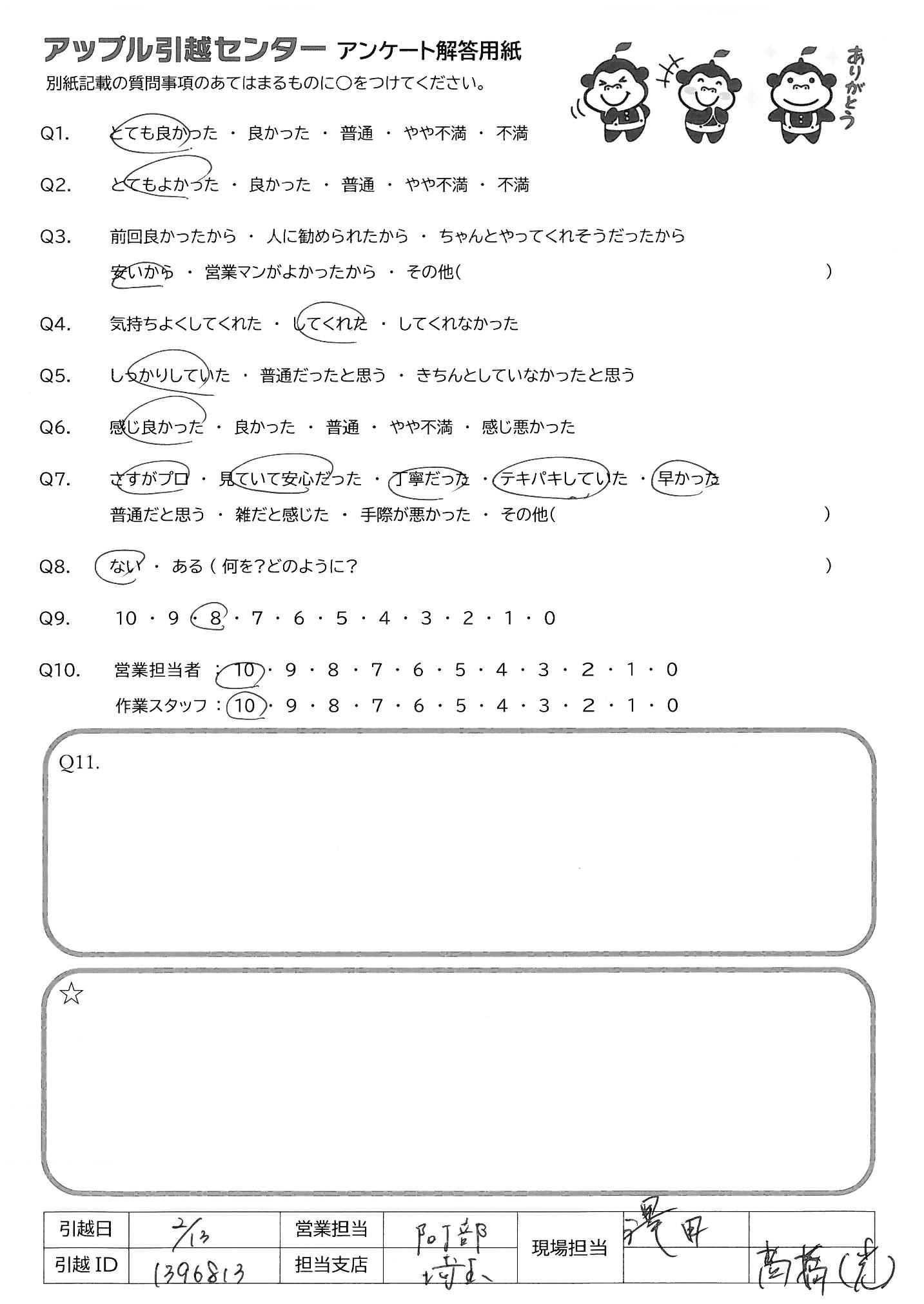 A.お手頃な値段で引越しができ、スタッフのみなさんの作業も てきぱきとしていて良かったので