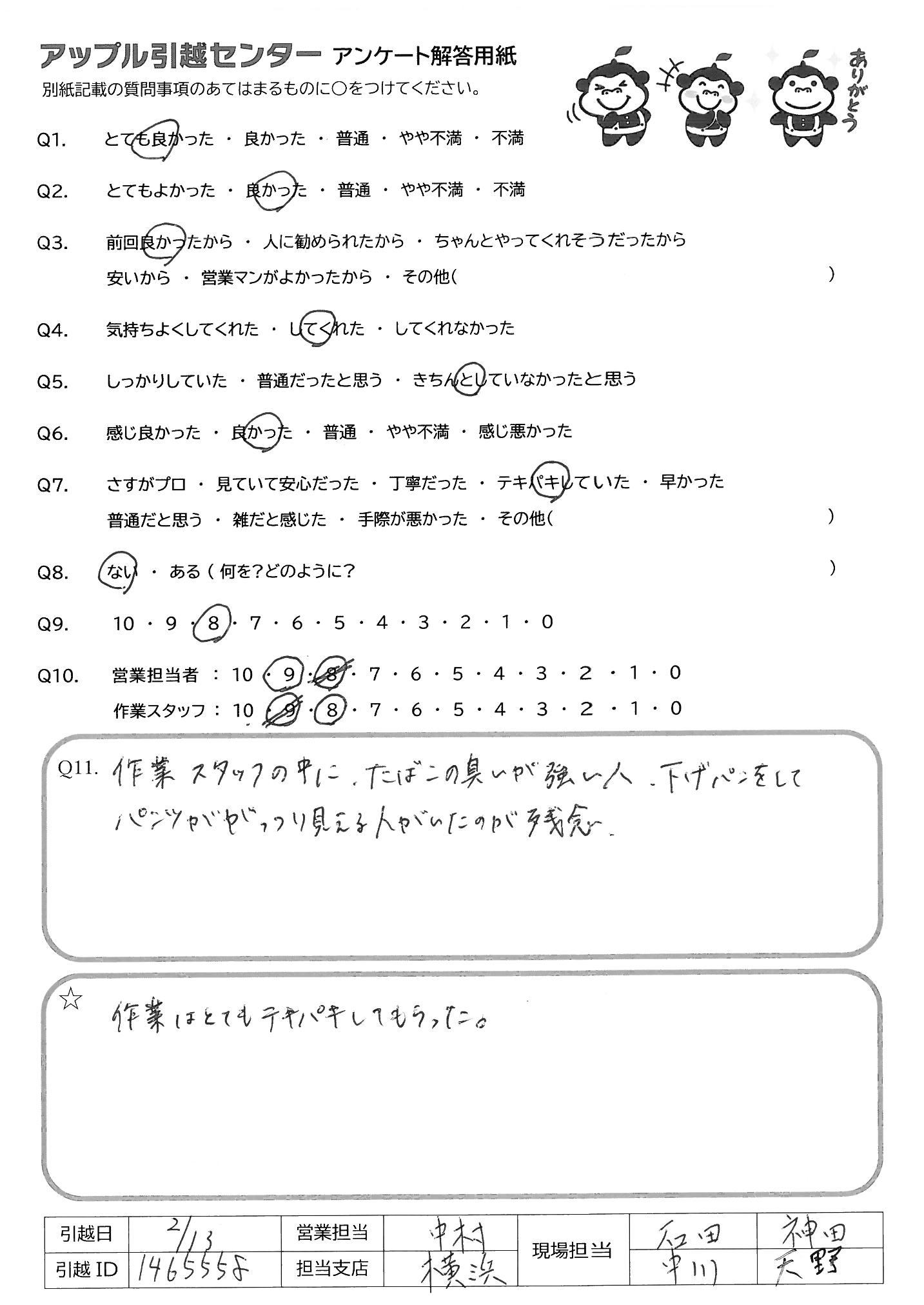 引越し日:2022年02月13日 エリア:神奈川県横浜市港北区