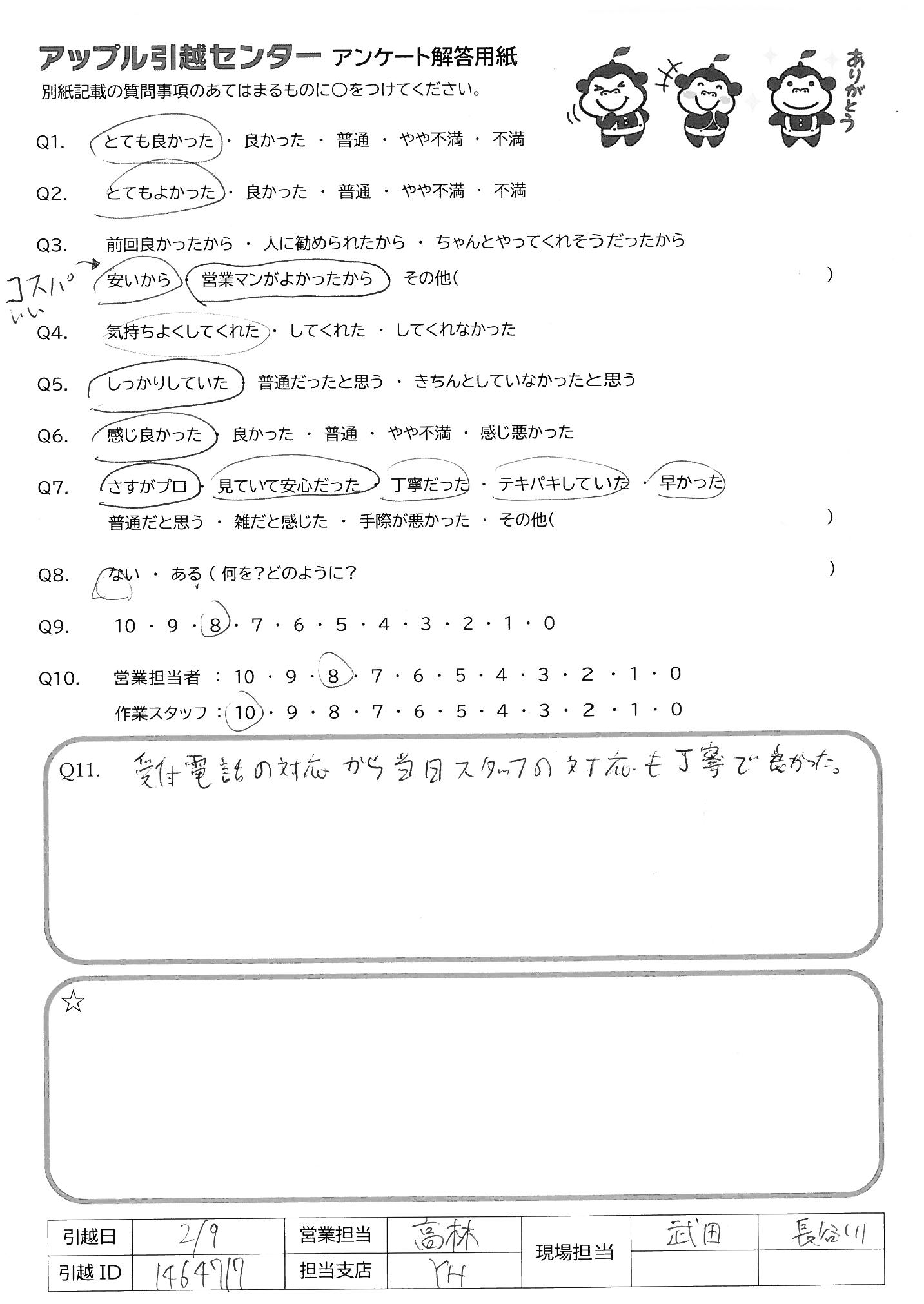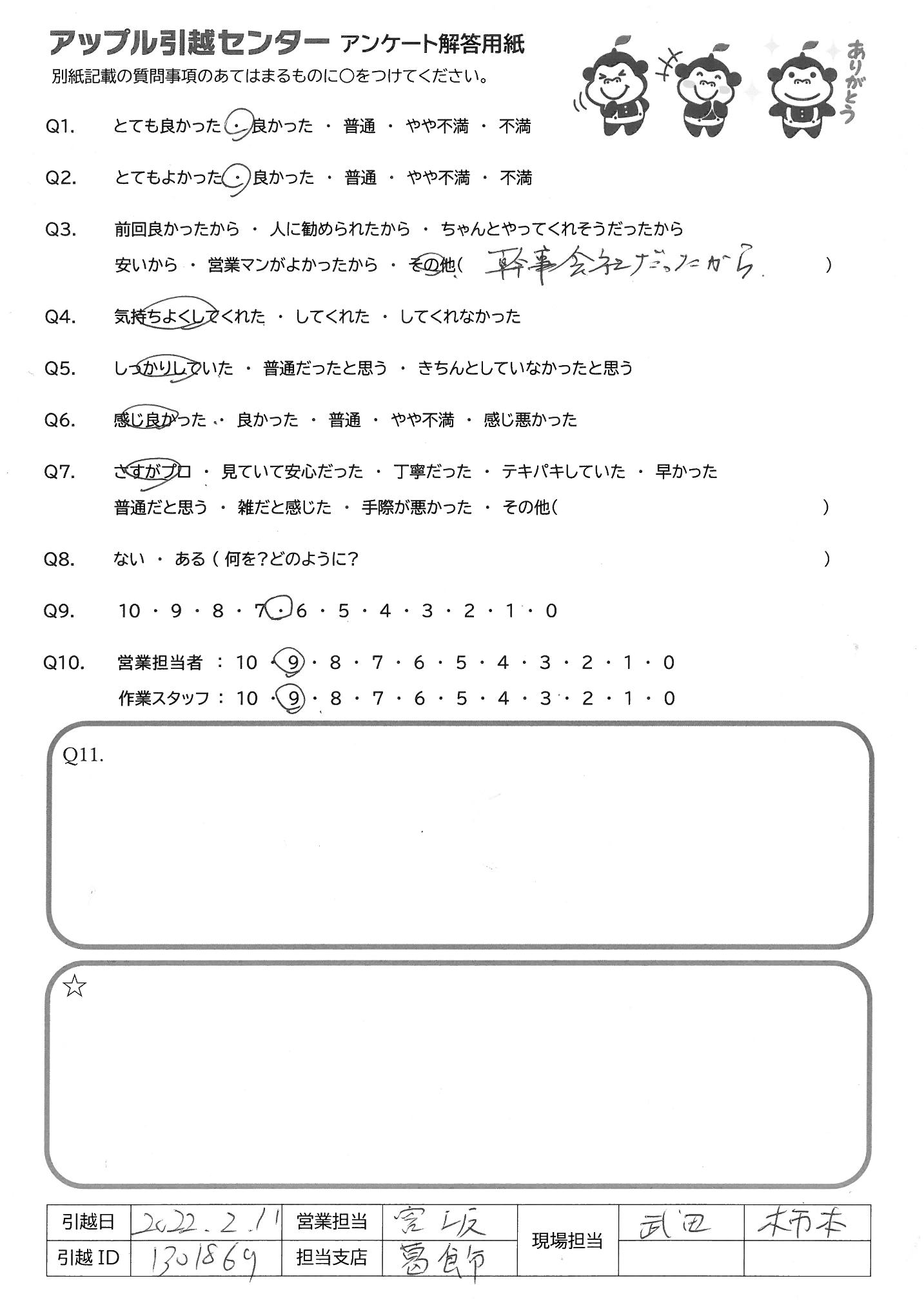 引越し日:2022年02月10日 エリア:大阪府大阪市淀川区