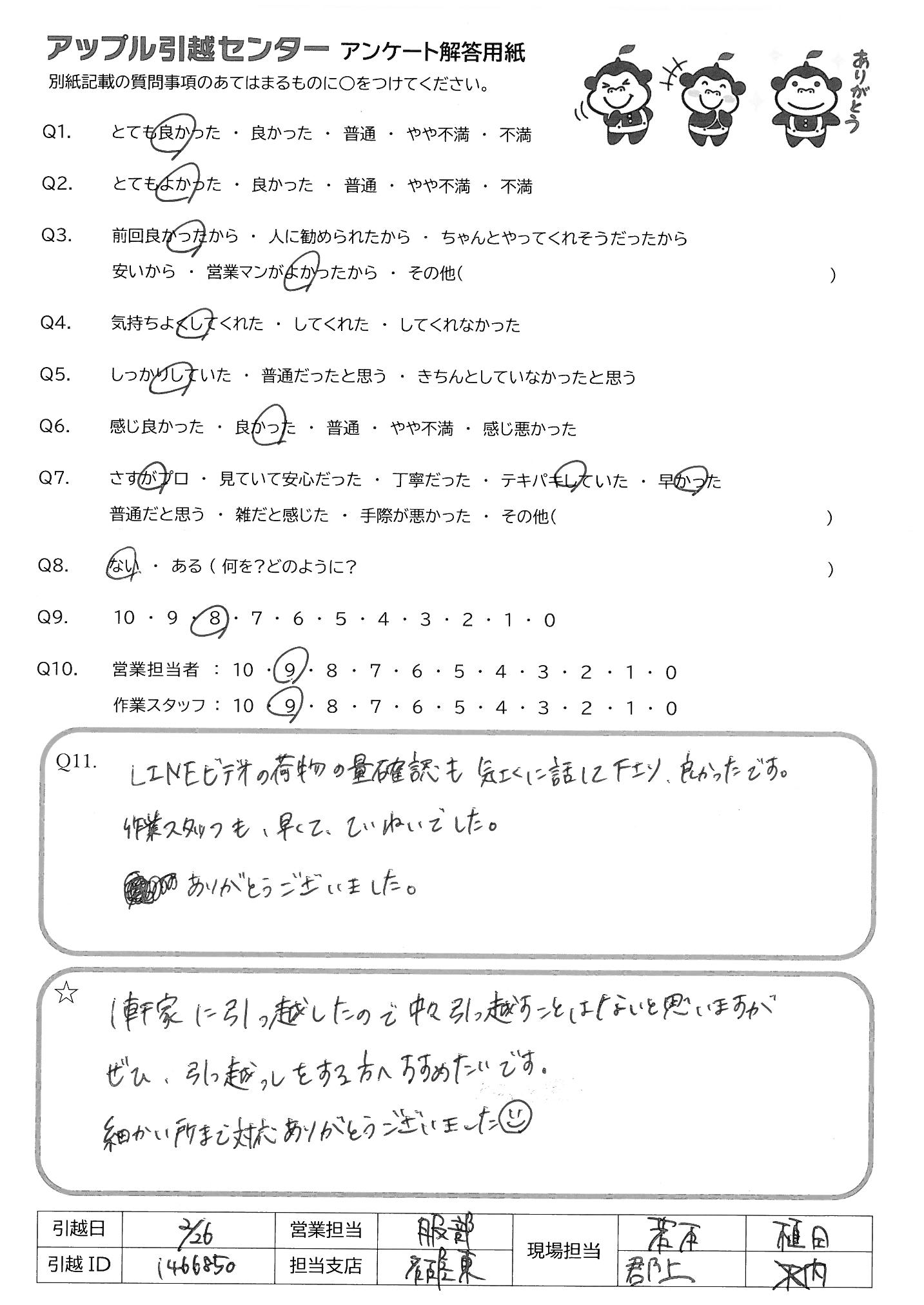 A.1軒家に引っ越したので、中々引っ越すことはないと思いますが ぜひ、引っ越しをする方へすすめたいです 細かい所まで対応ありがとうございました。
